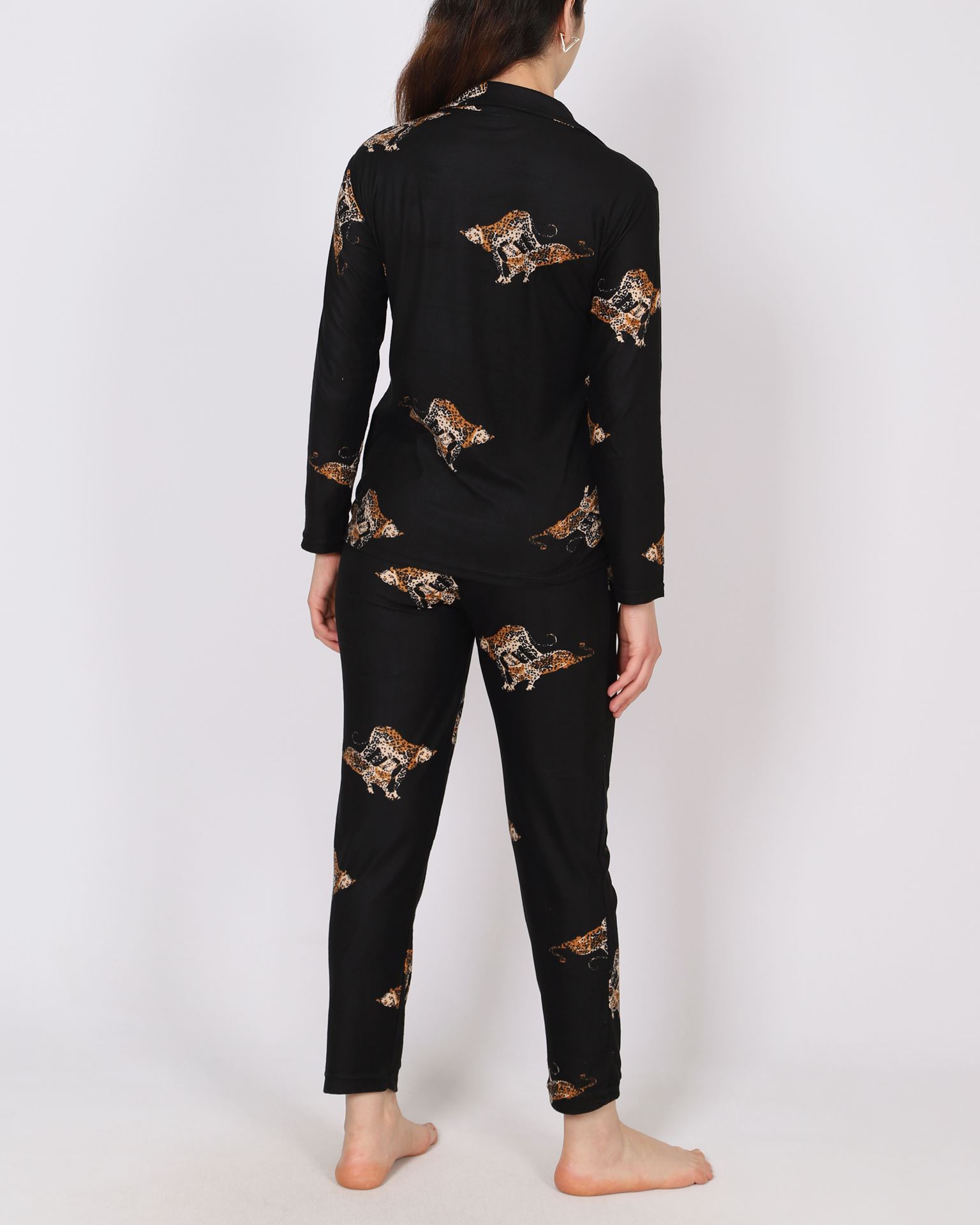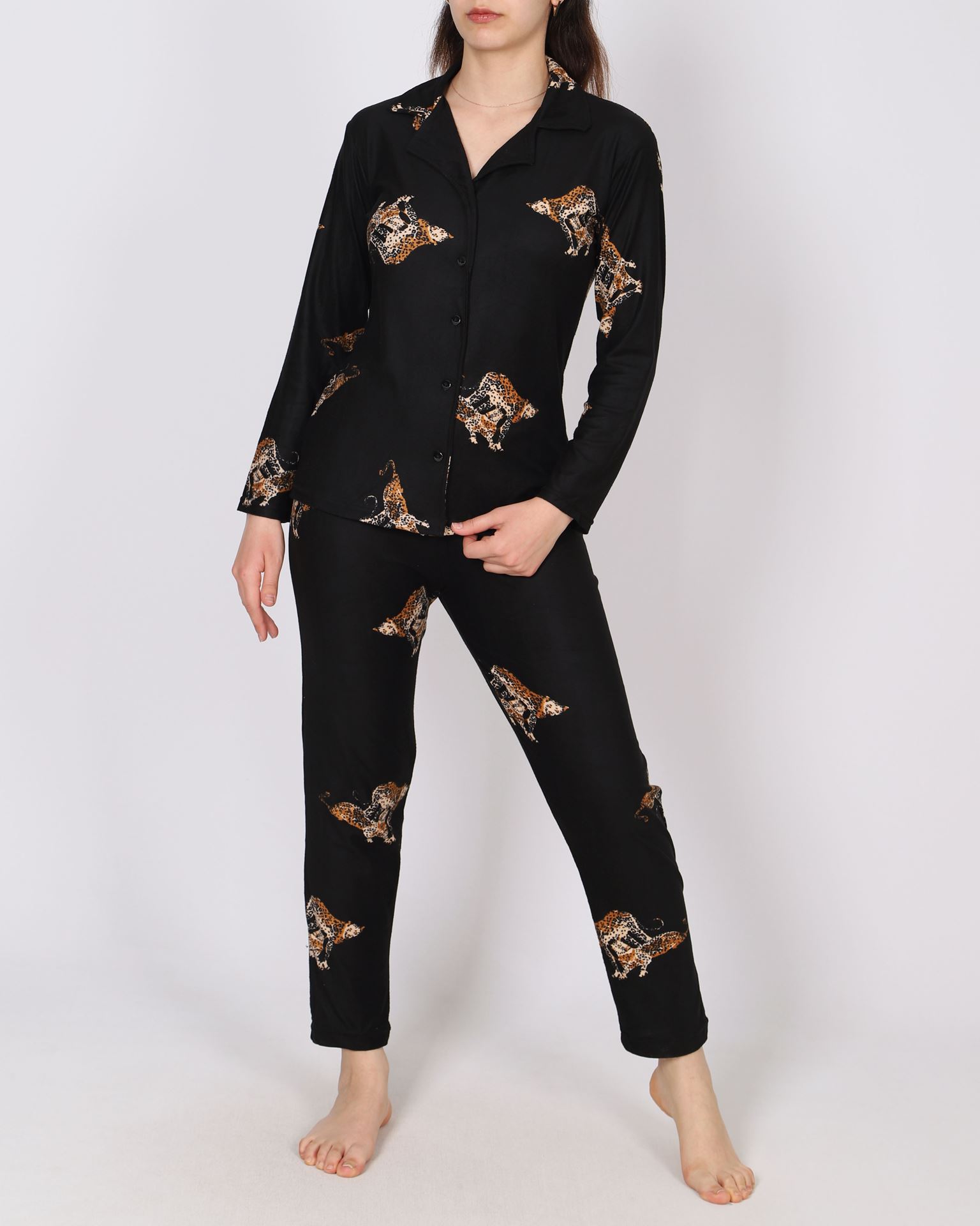 Siyah Süet Düğmeli Pijama Takımı PJM1835