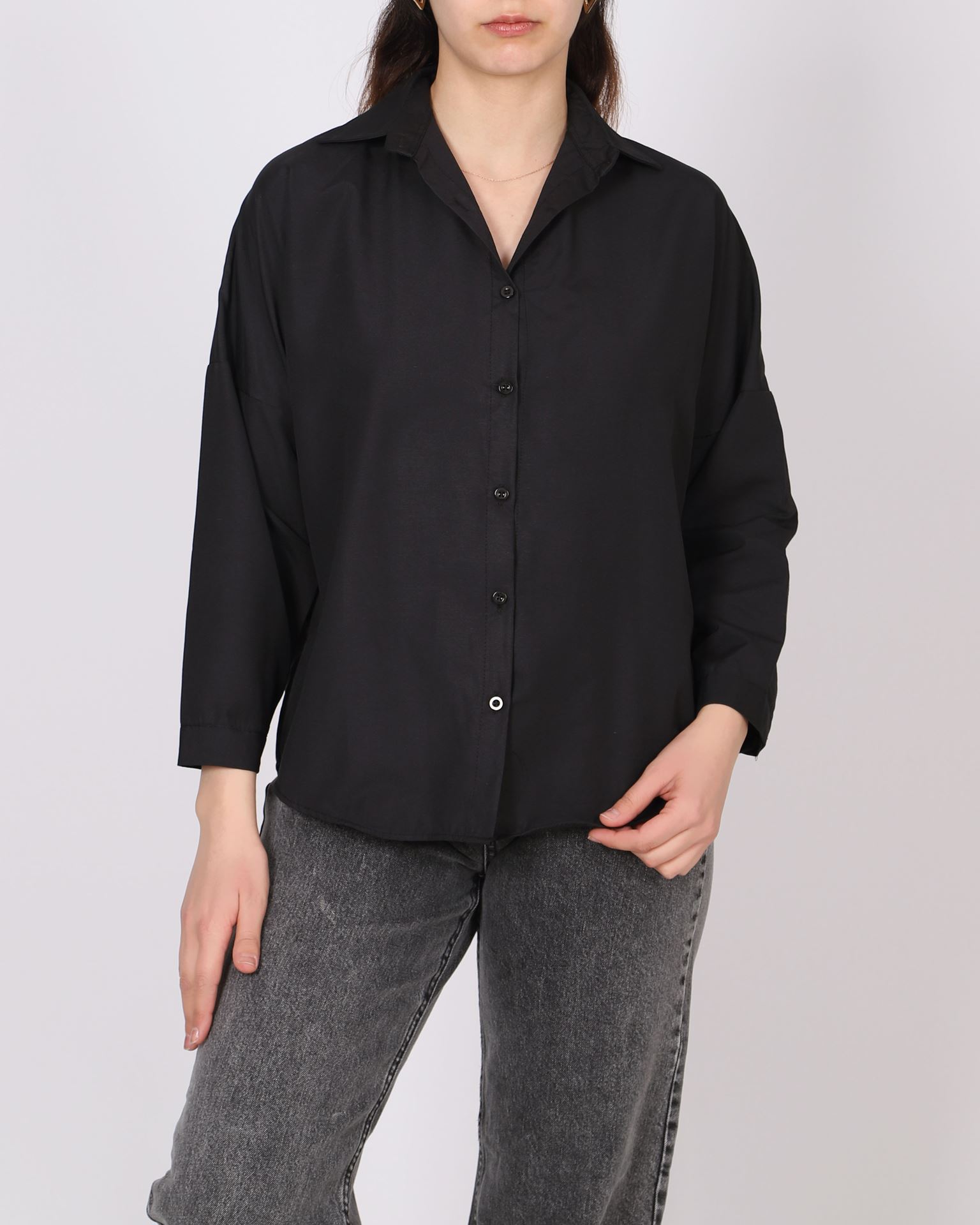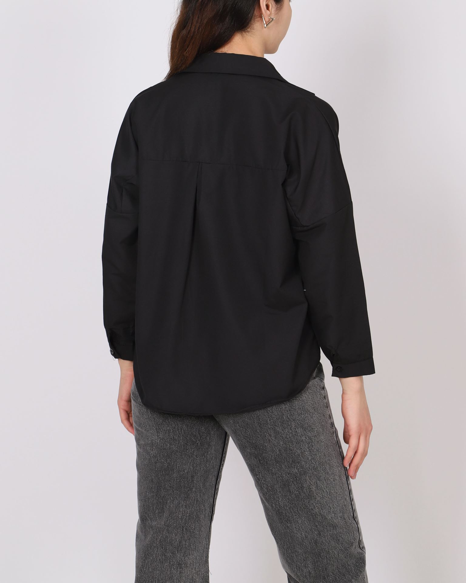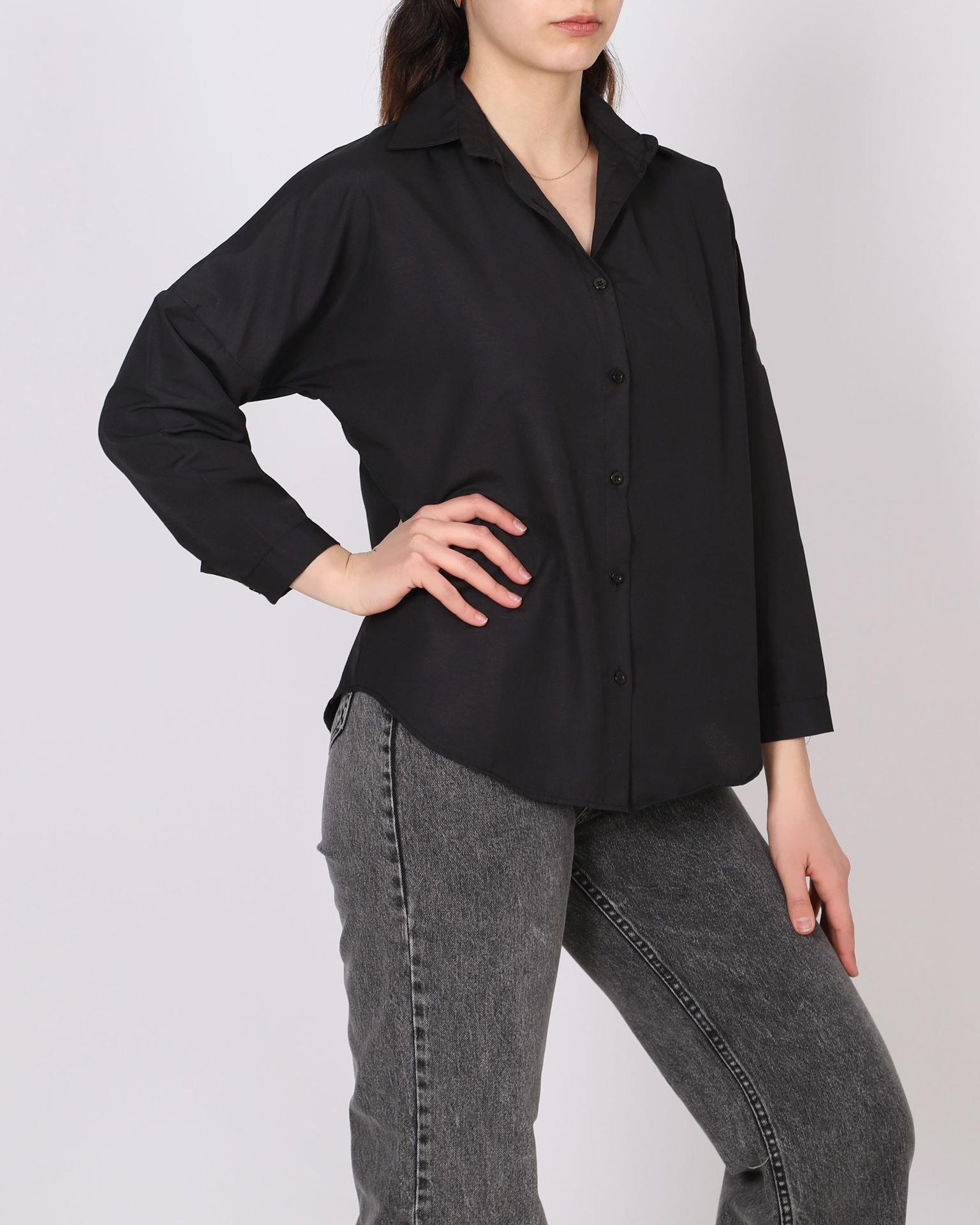 Siyah Terikoton Oversize Gömlek GML145