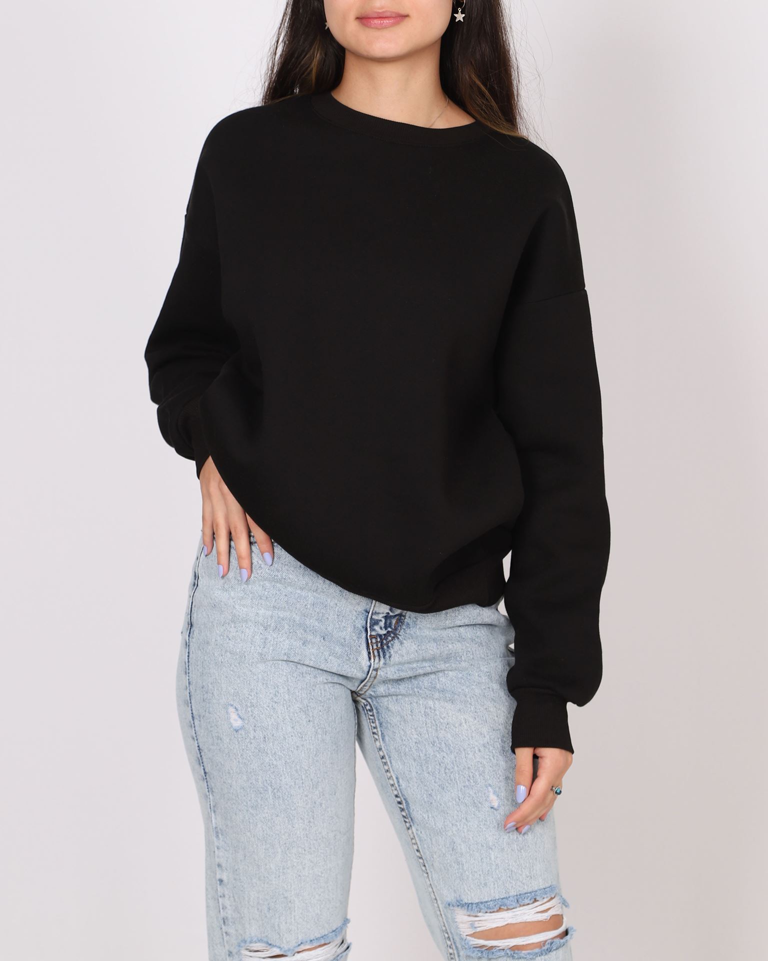 Siyah Üç İplik Şardonlu Sweatshirt SWT1001