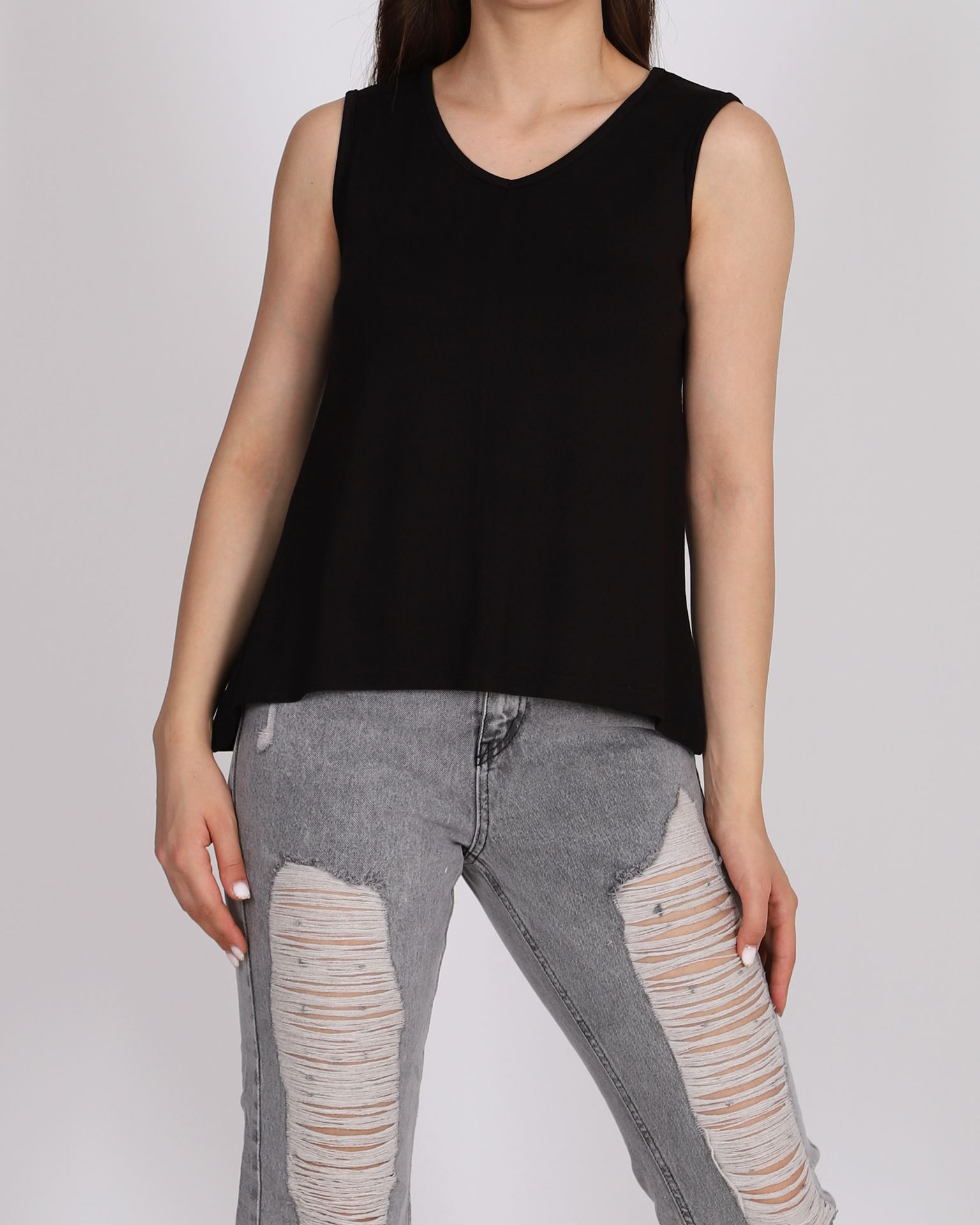 Siyah V Yaka Arkası Yırtmaçlı Bluz BLZ268