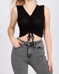 Siyah V Yaka Önü Büzgülü Bluz BLZ207