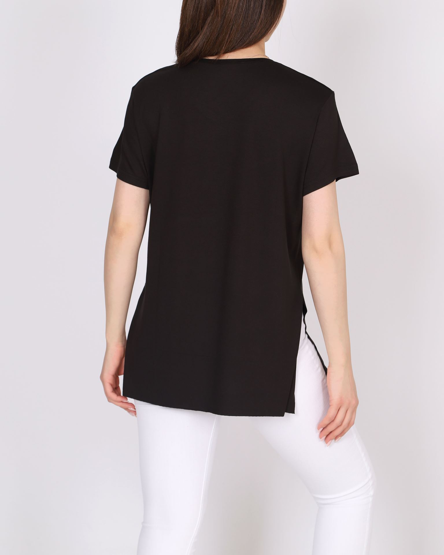 Siyah V Yaka Yırtmaçlı T-shirt TSH381