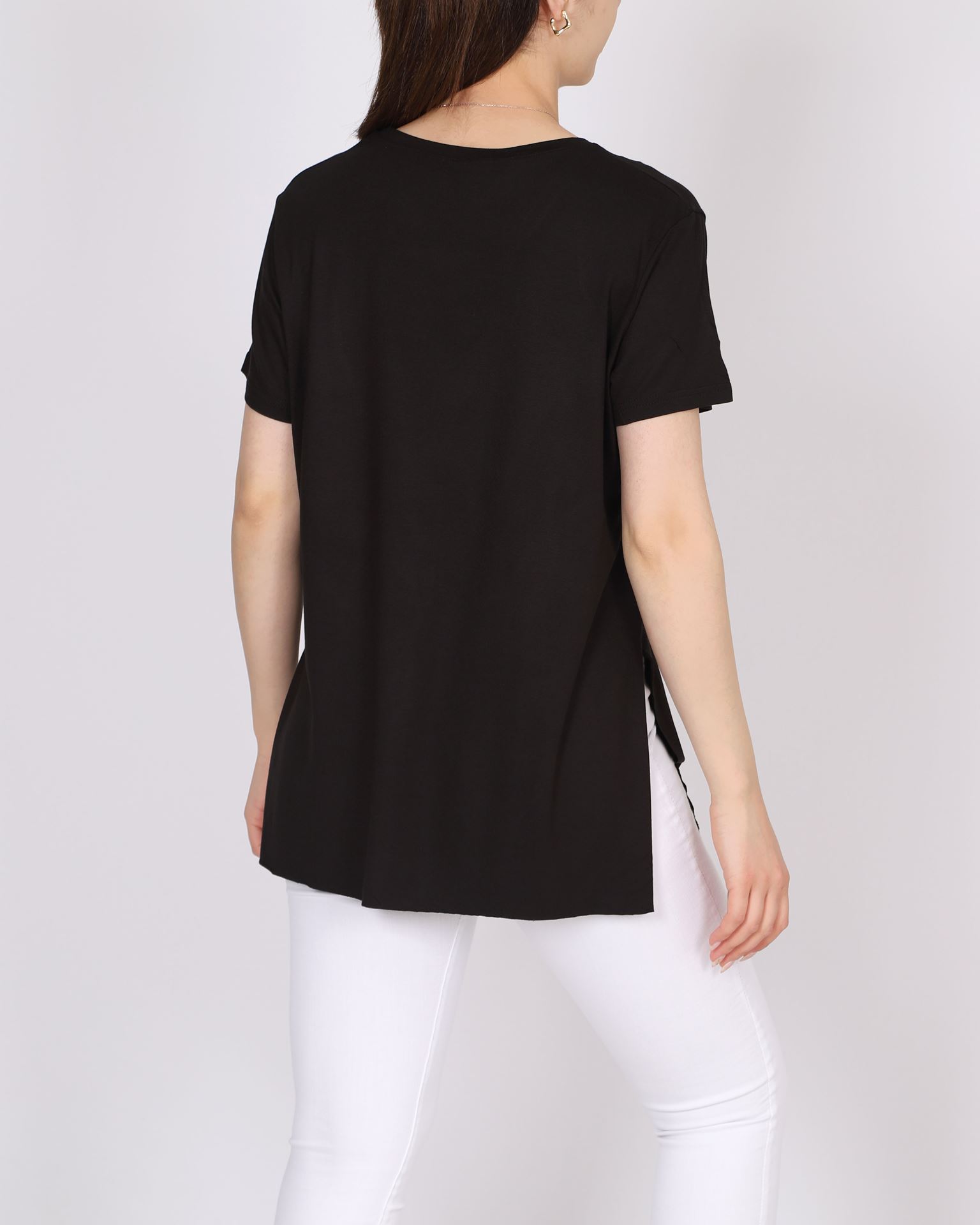 Siyah Yandan Yırtmaçlı T-shirt TSH369