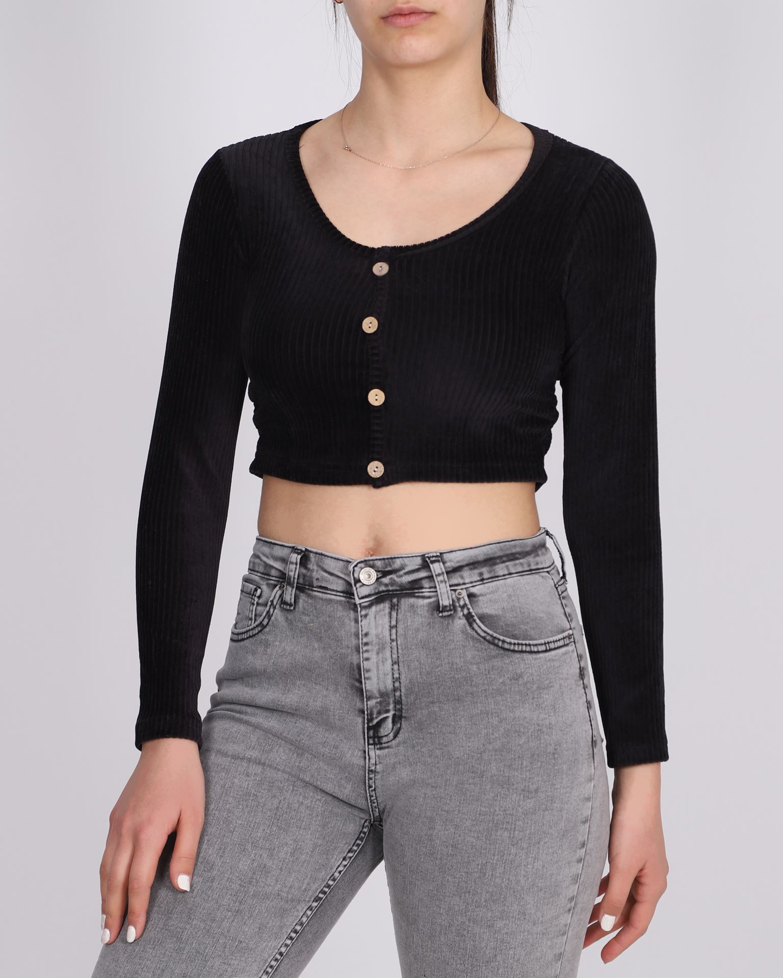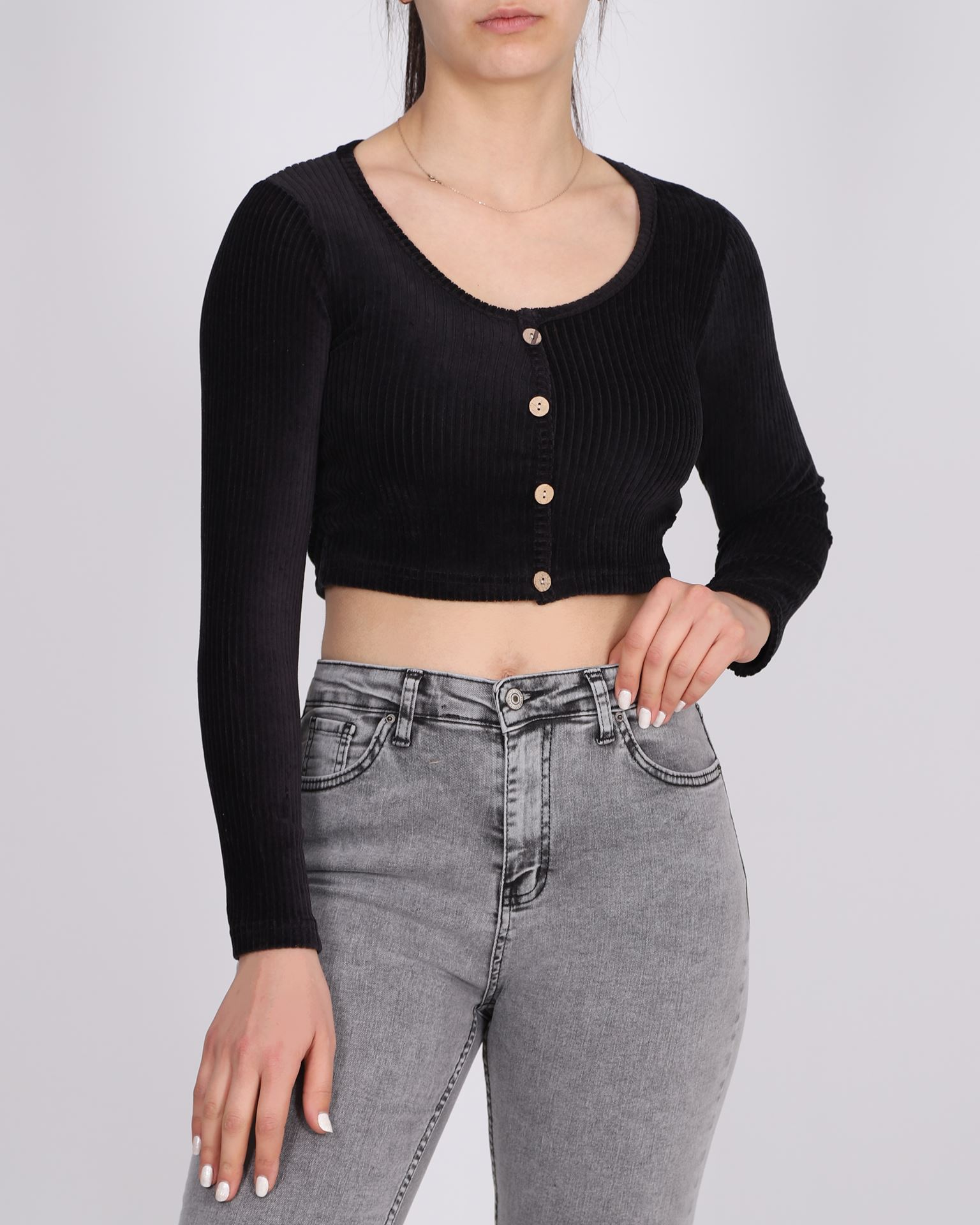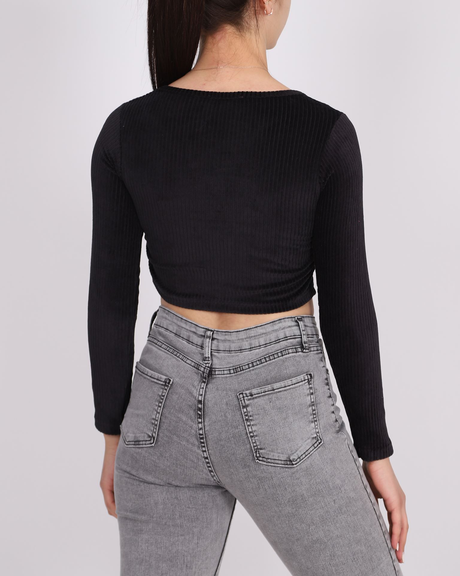 Siyah Yanları Büzgülü Kadife Bluz BLZ307