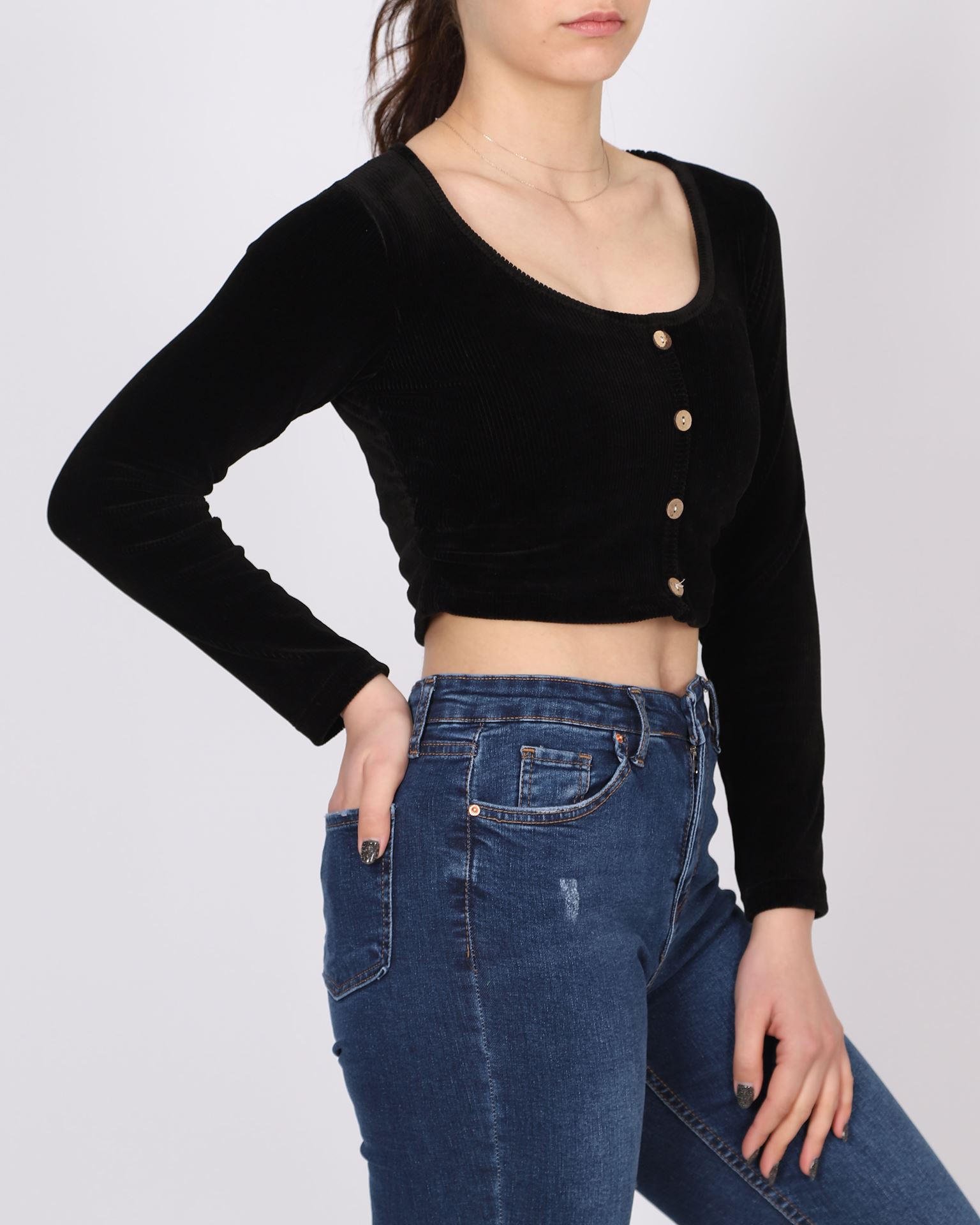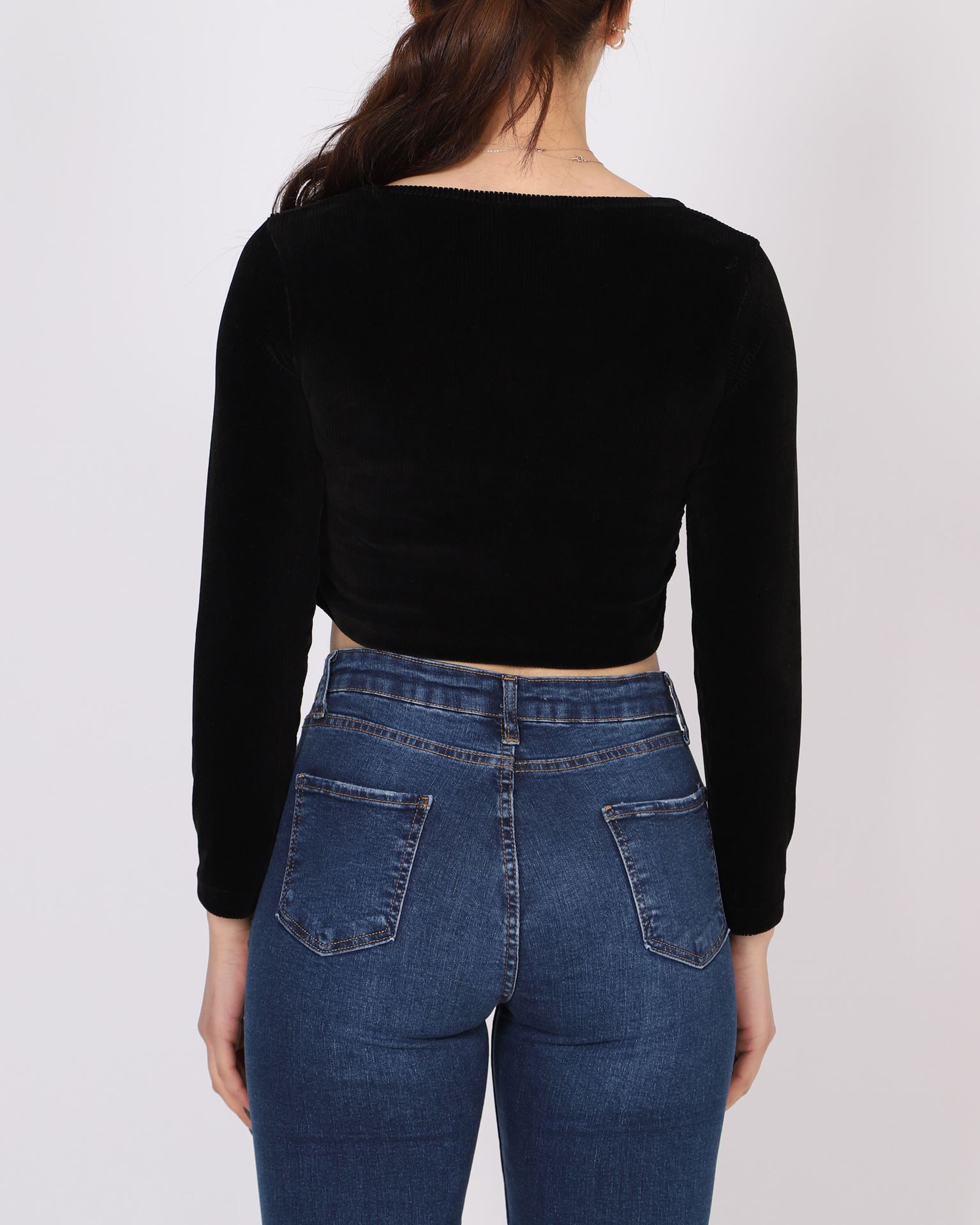 Siyah Yanları Büzgülü Kadife Bluz BLZ313