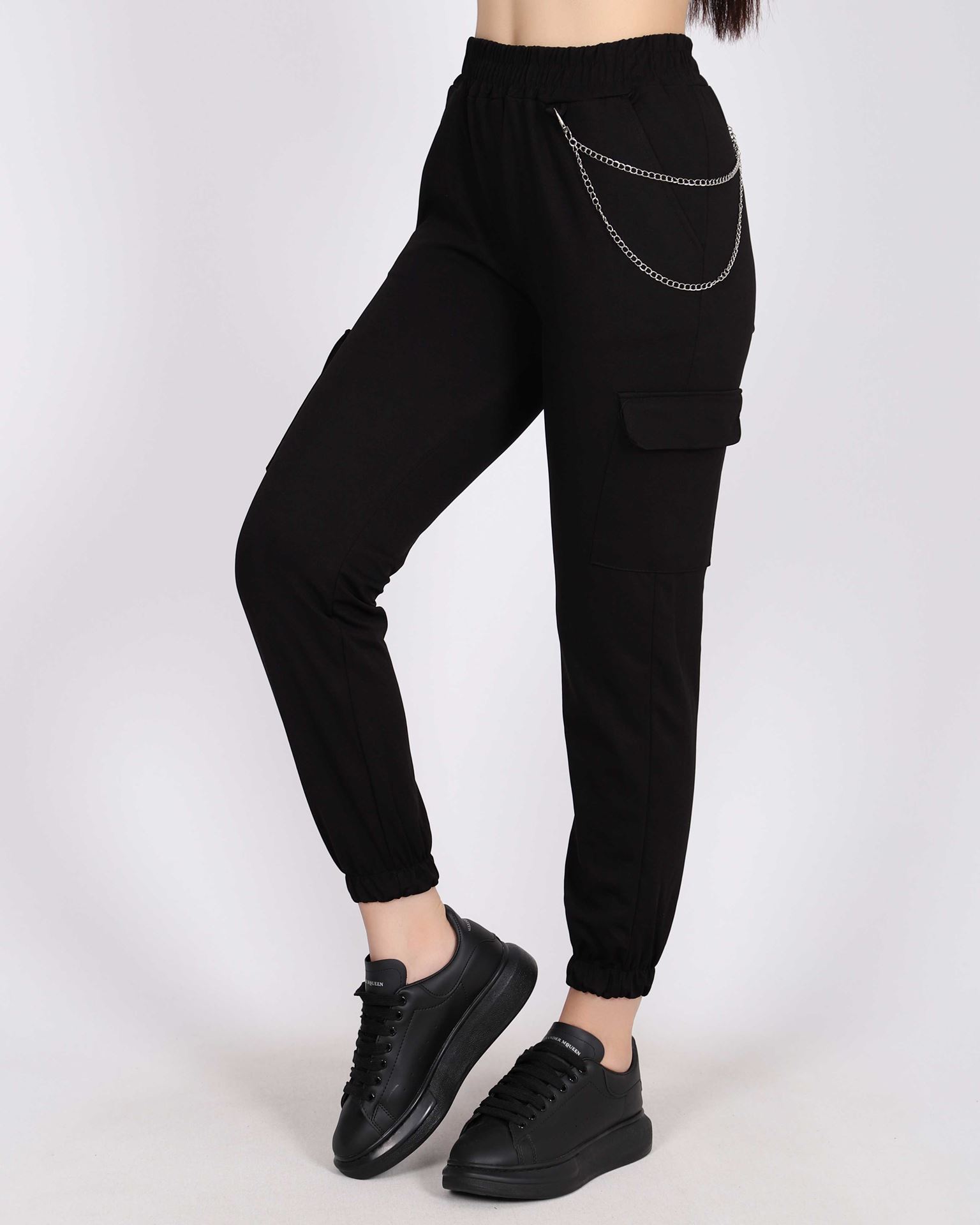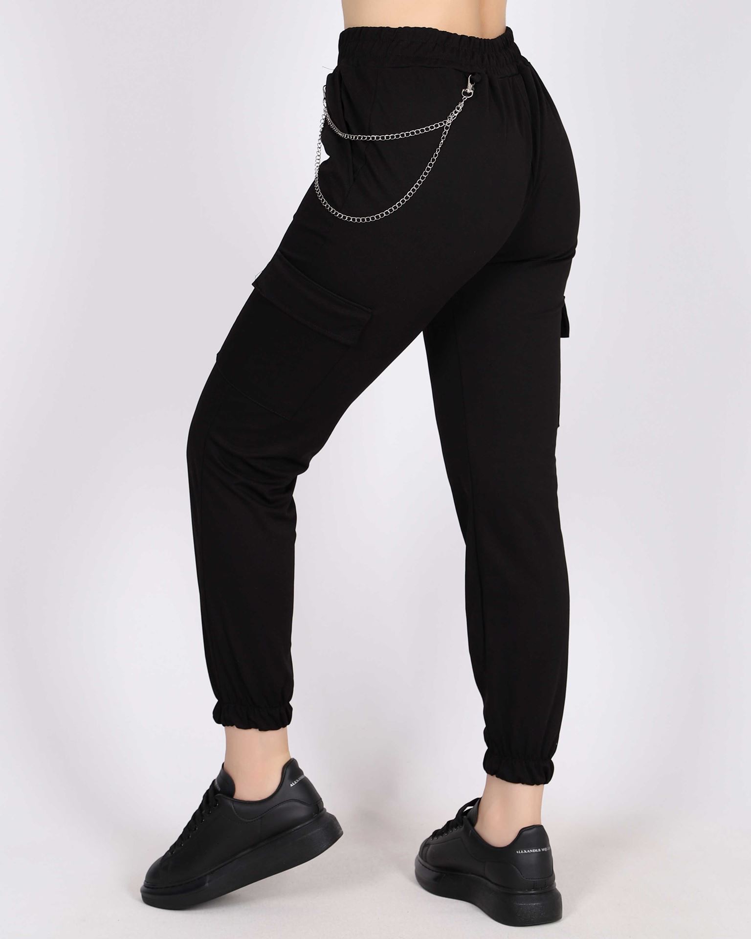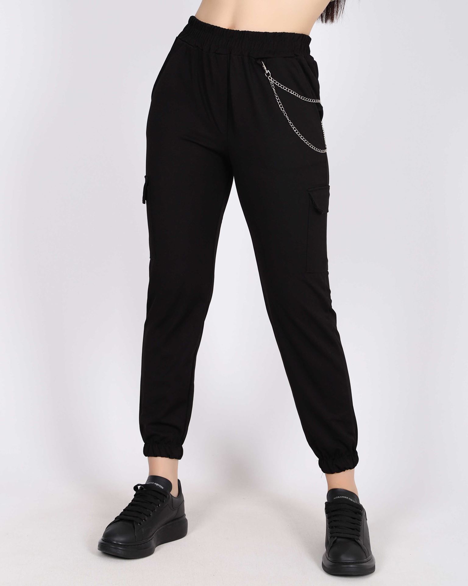 Siyah Zincirli Kargo Pantolon PNT442