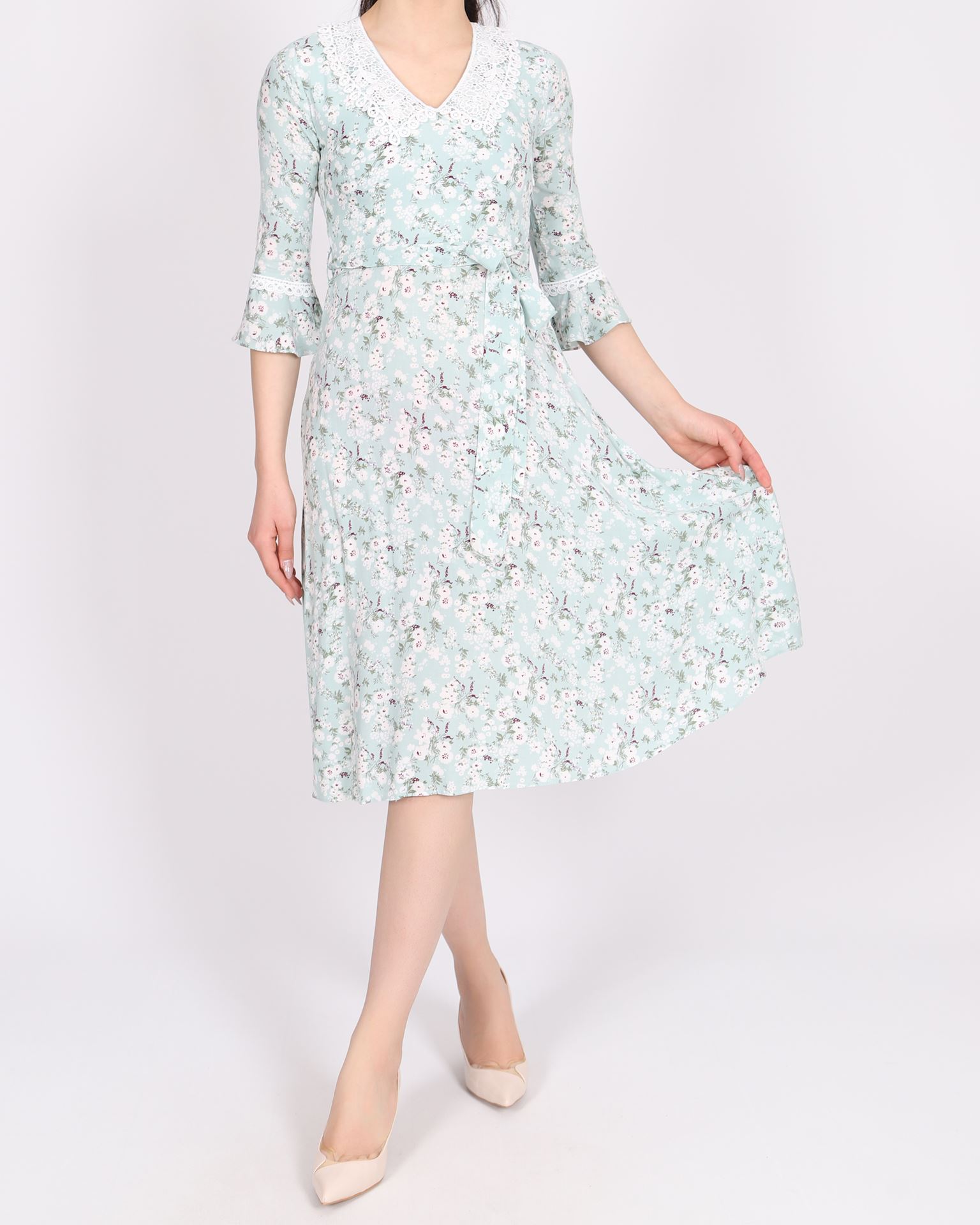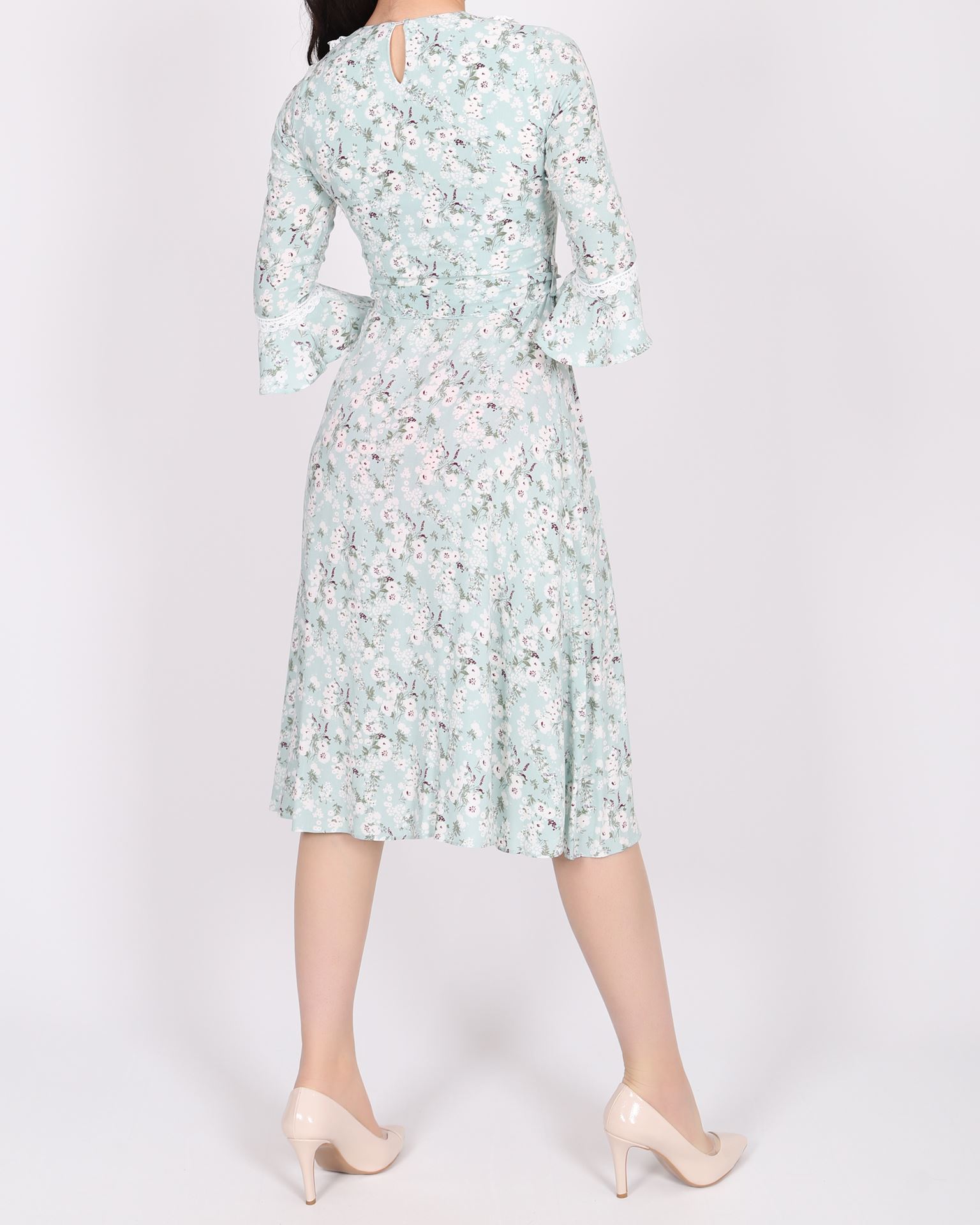 Su Yeşili Dantel Yaka Elbise ELB635
