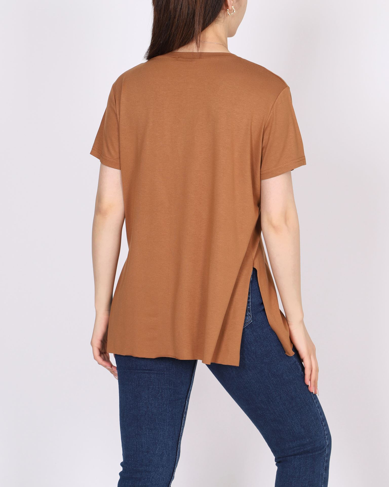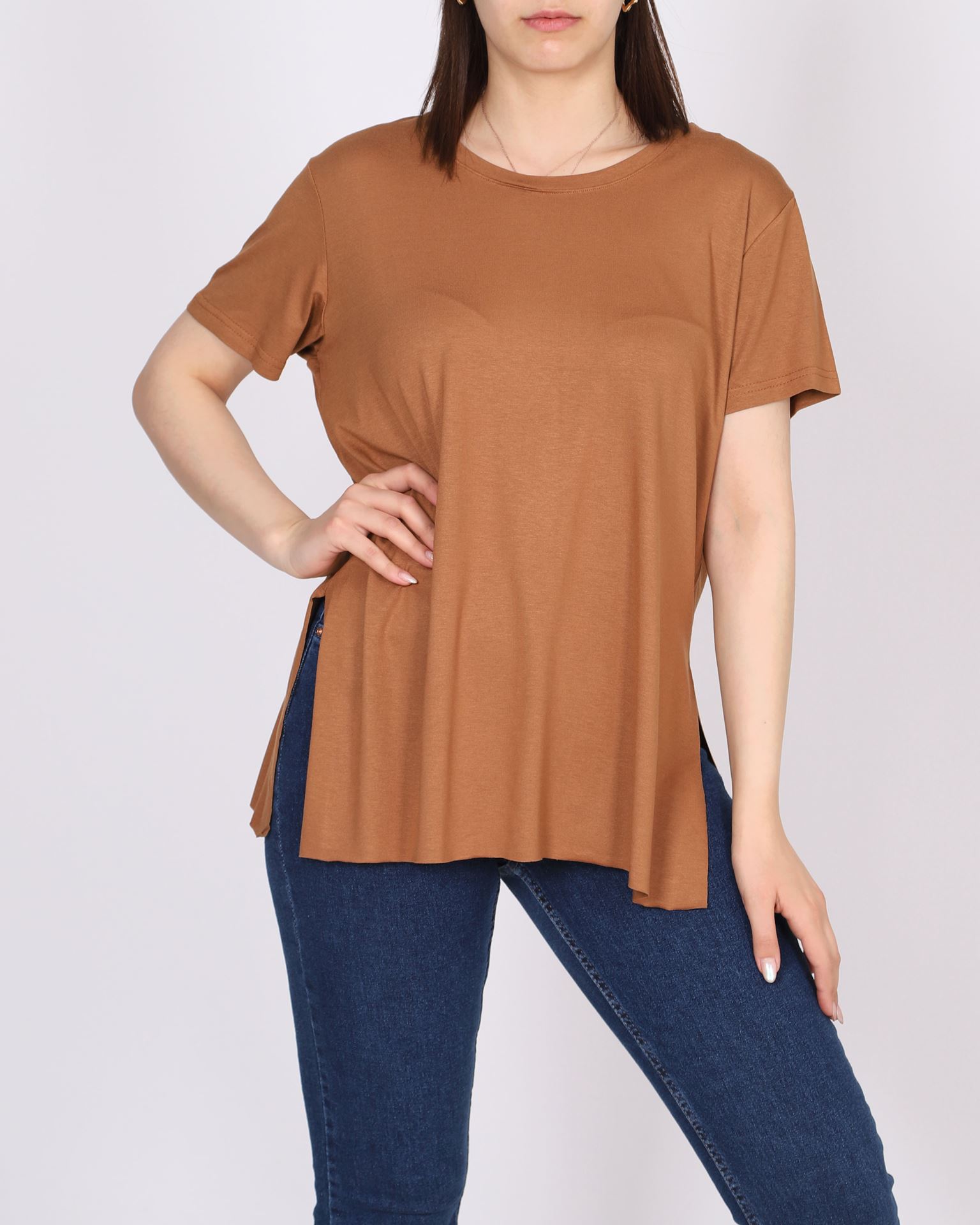 Taba Yandan Yırtmaçlı T-shirt TSH372