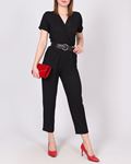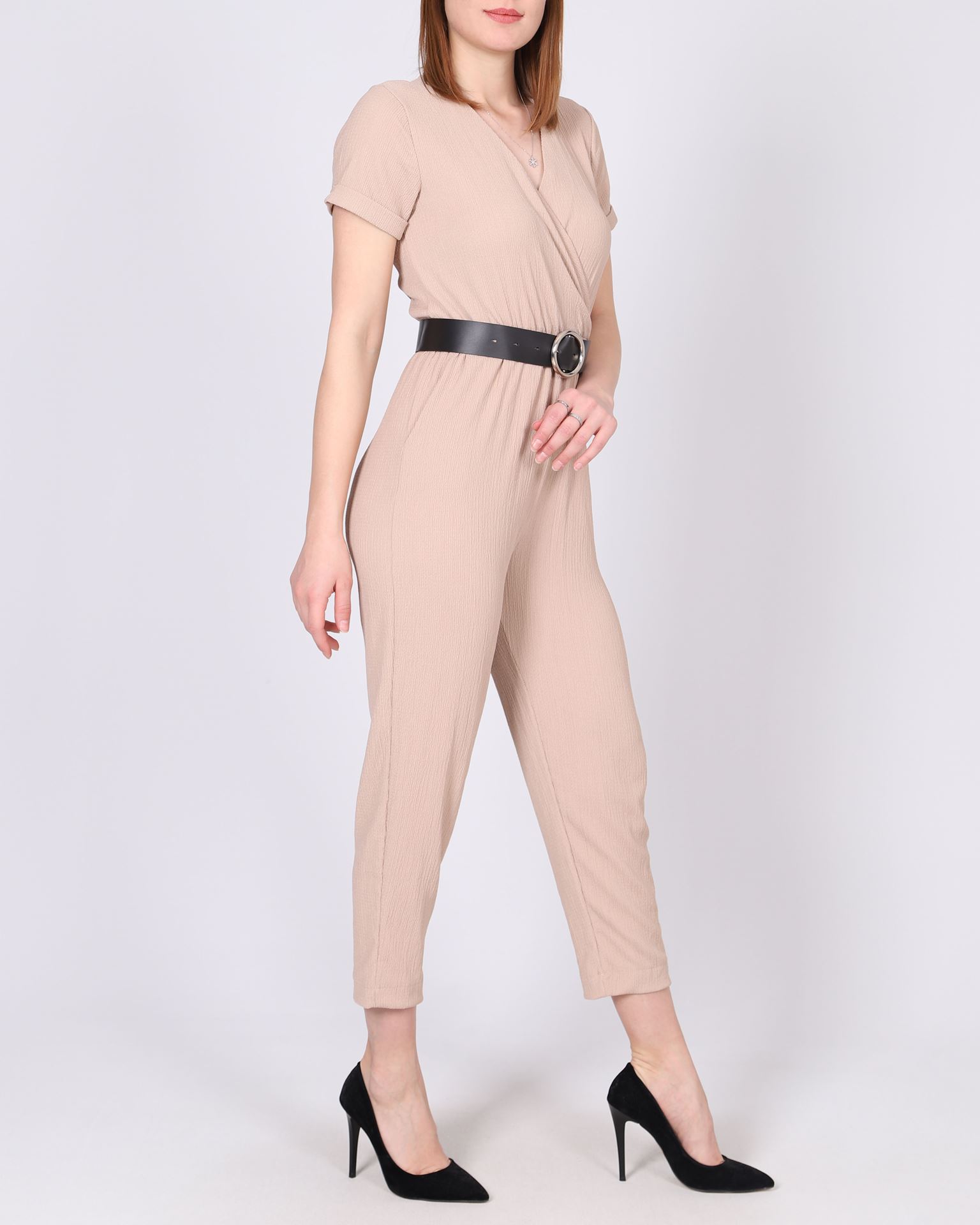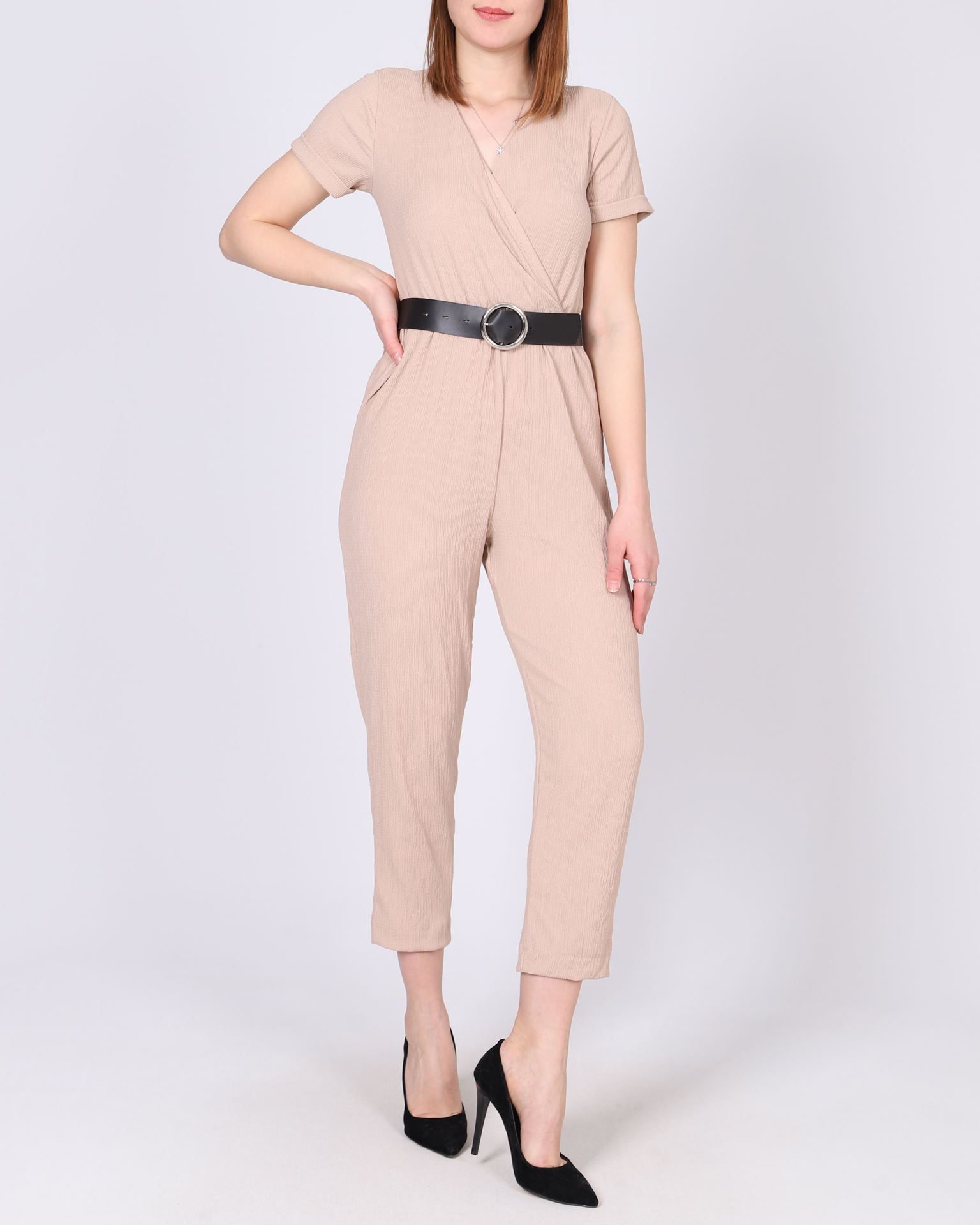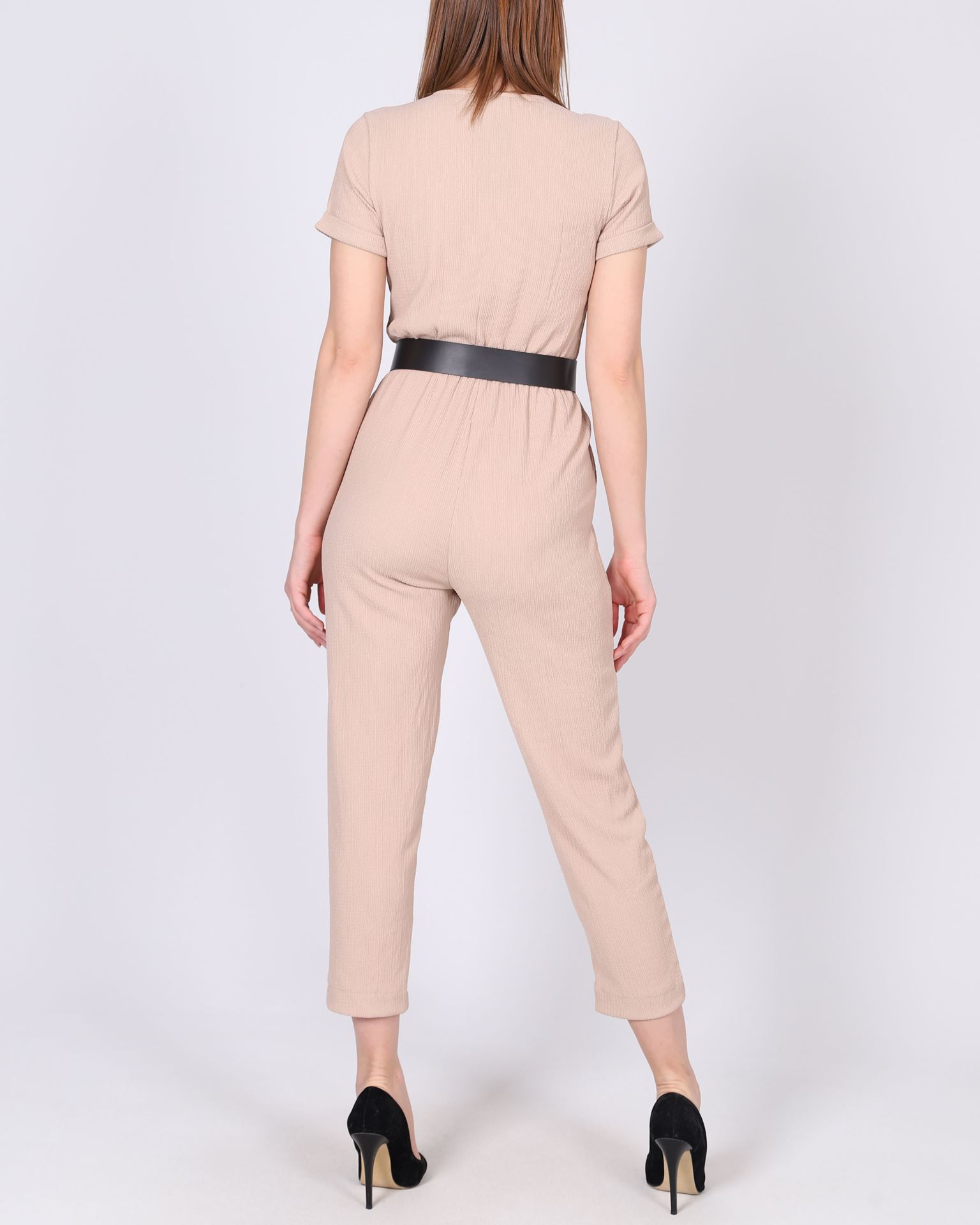 Taş Kemerli Kruvaze Yaka Bürümcük Tulum TLM459