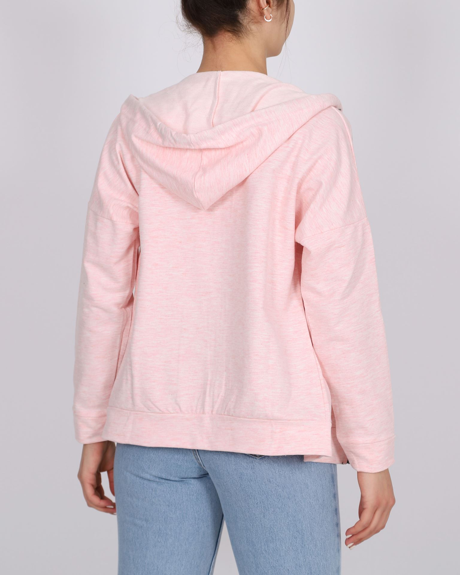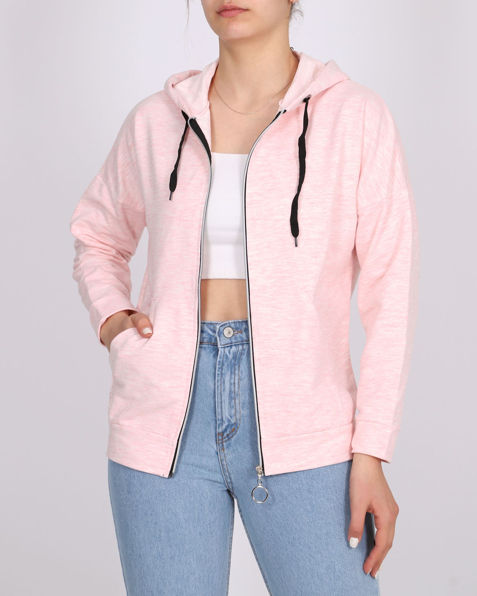 Toz Pembe Kapüşonlu Fermuarlı Sweat SWT904
