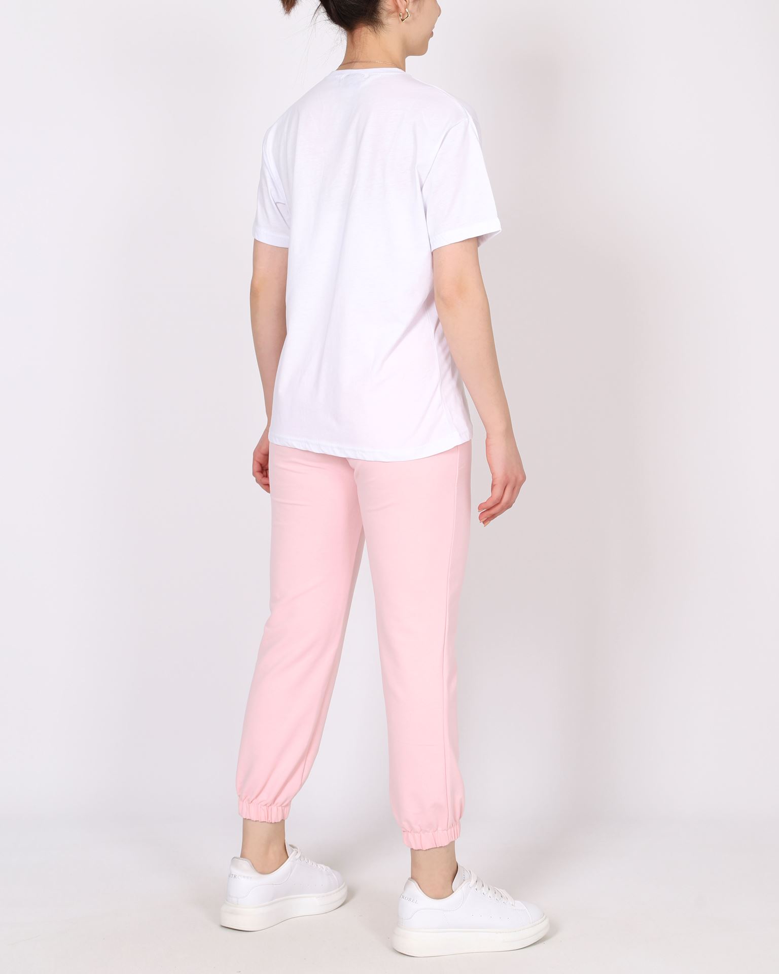 Toz Pembe Nakışlı Eşofman Takımı TKM2438