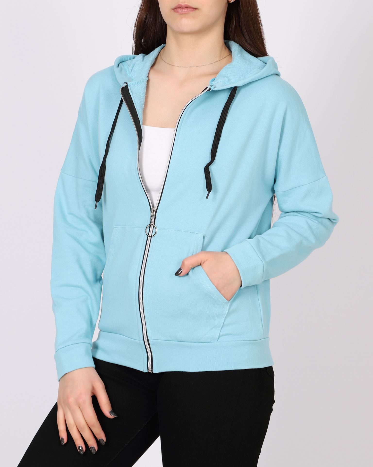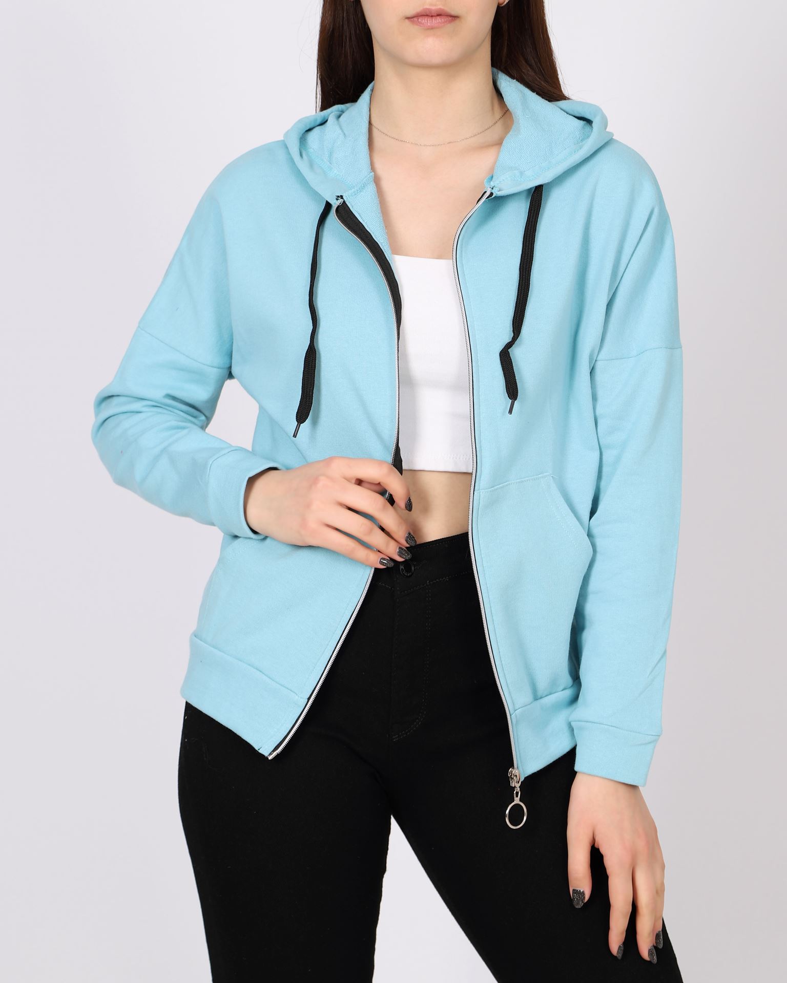 Turkuaz Kapüşonlu Fermuarlı Sweat SWT921