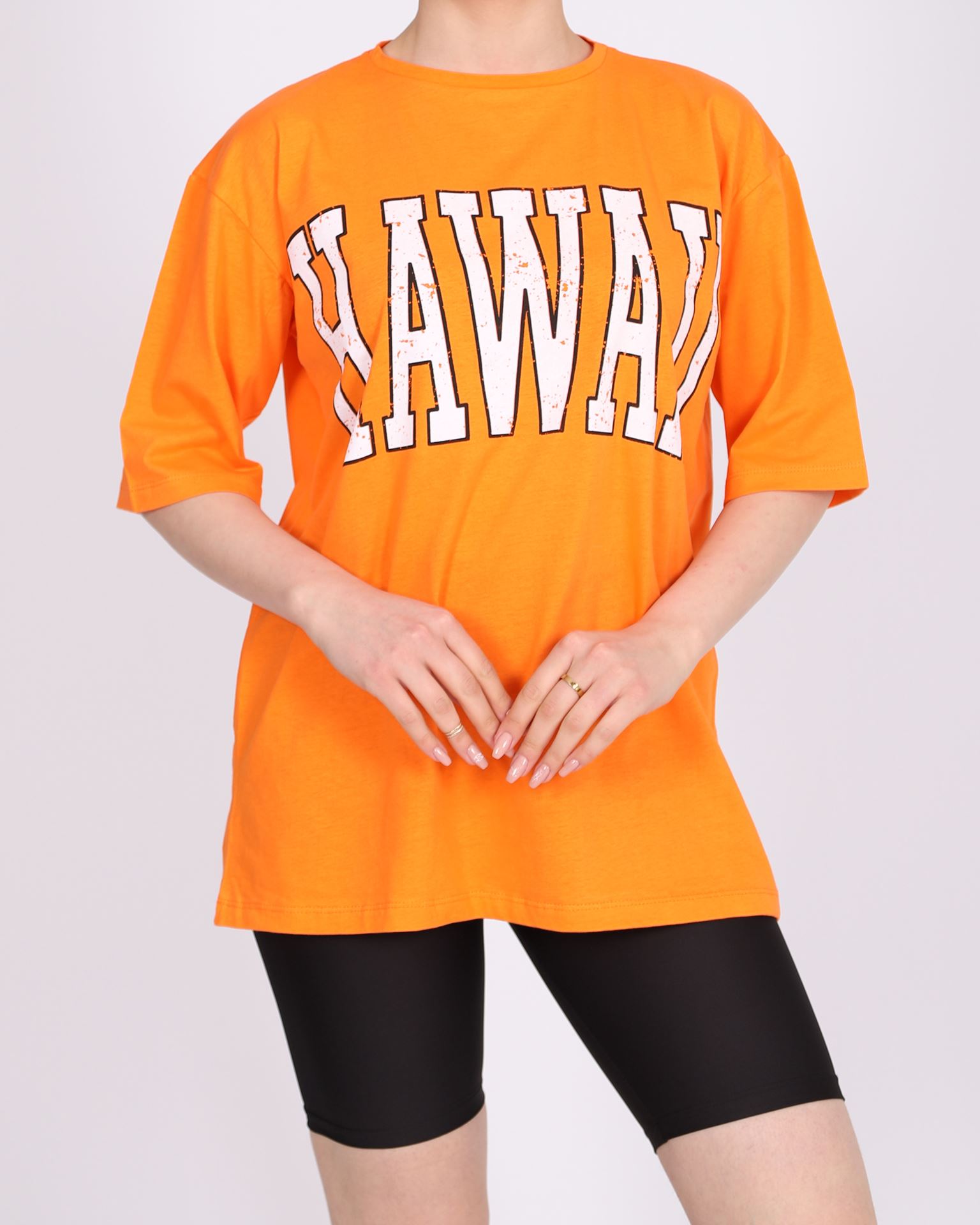 Turuncu Baskılı Duble Kol T-shirt TSH281