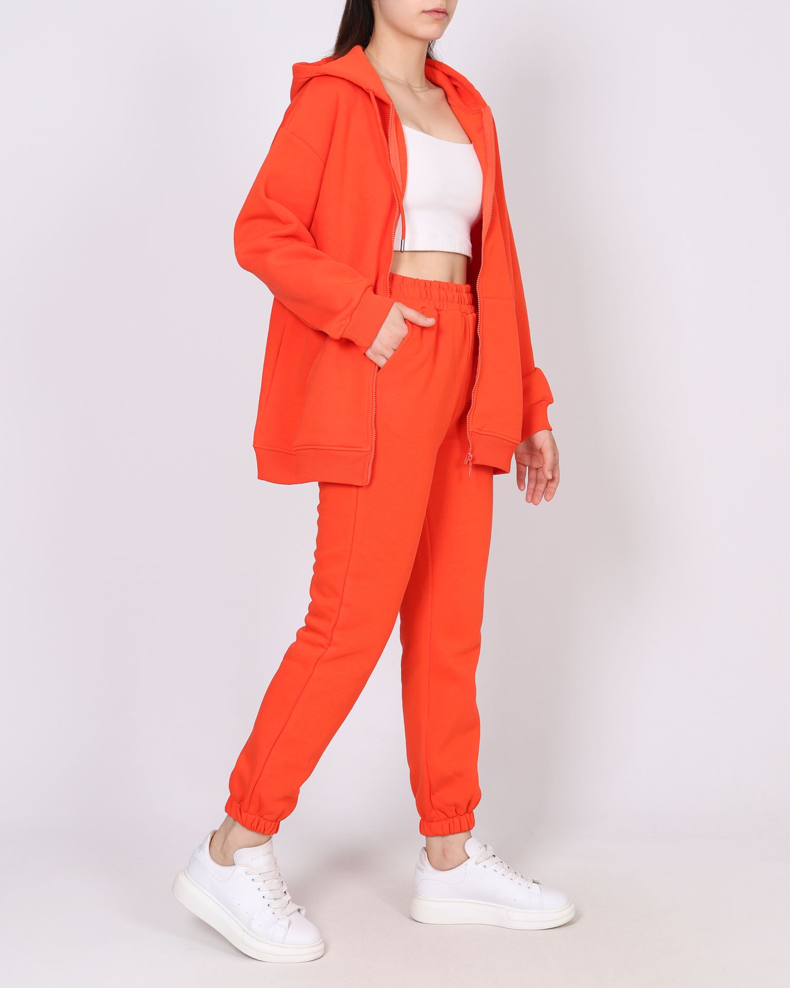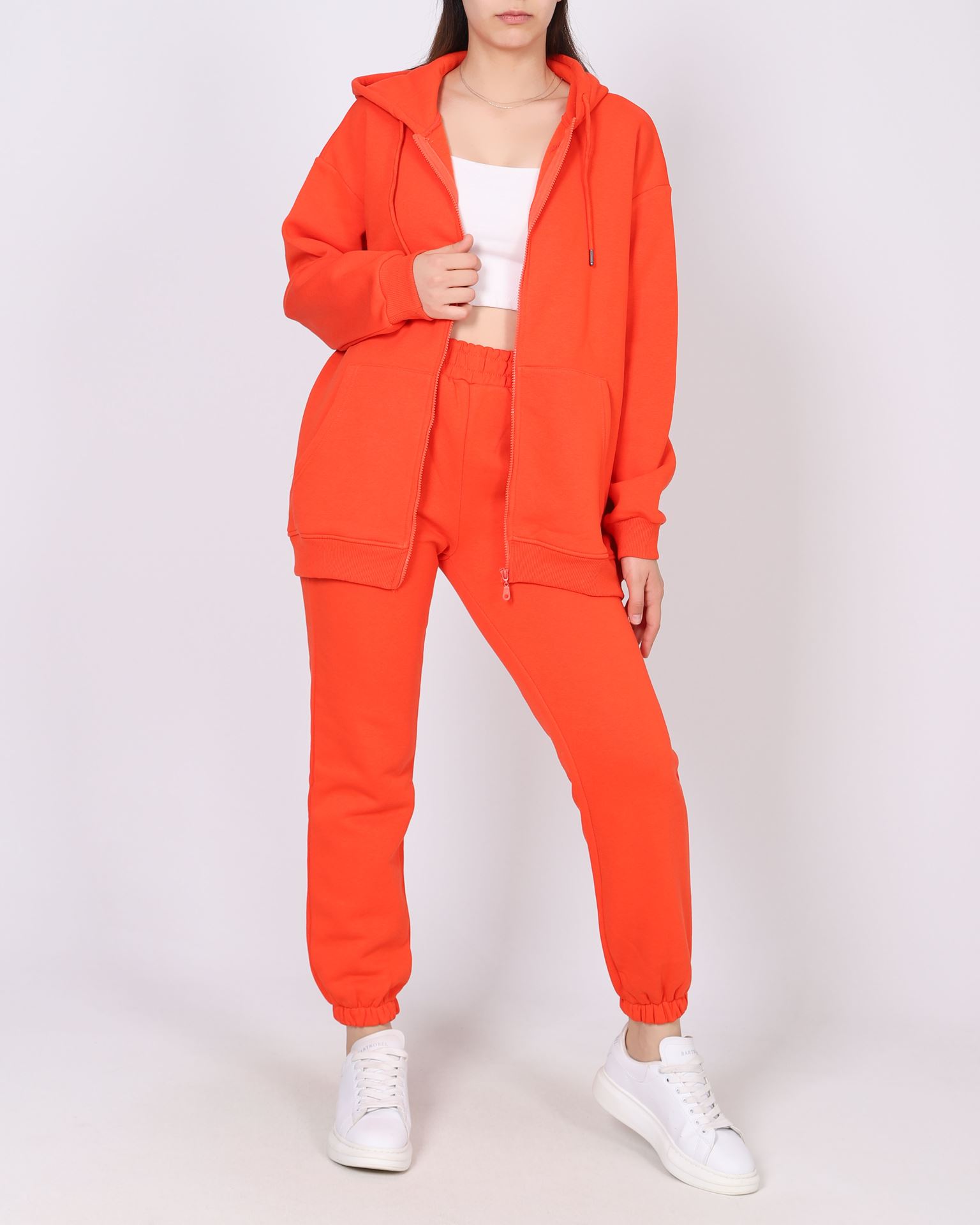 Turuncu İçi Şardonlu Fermuarlı Eşofman Takımı TKM2568