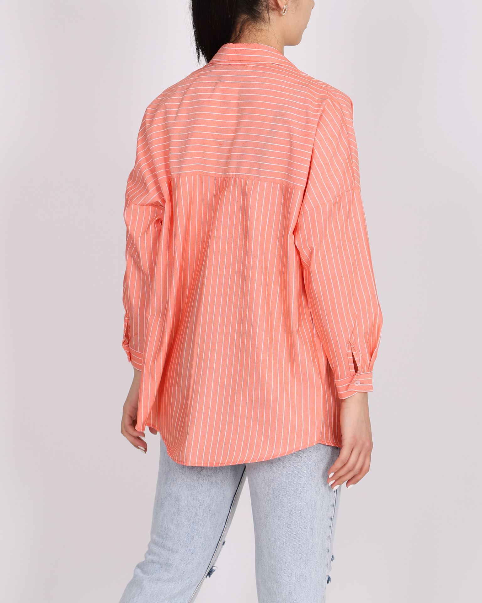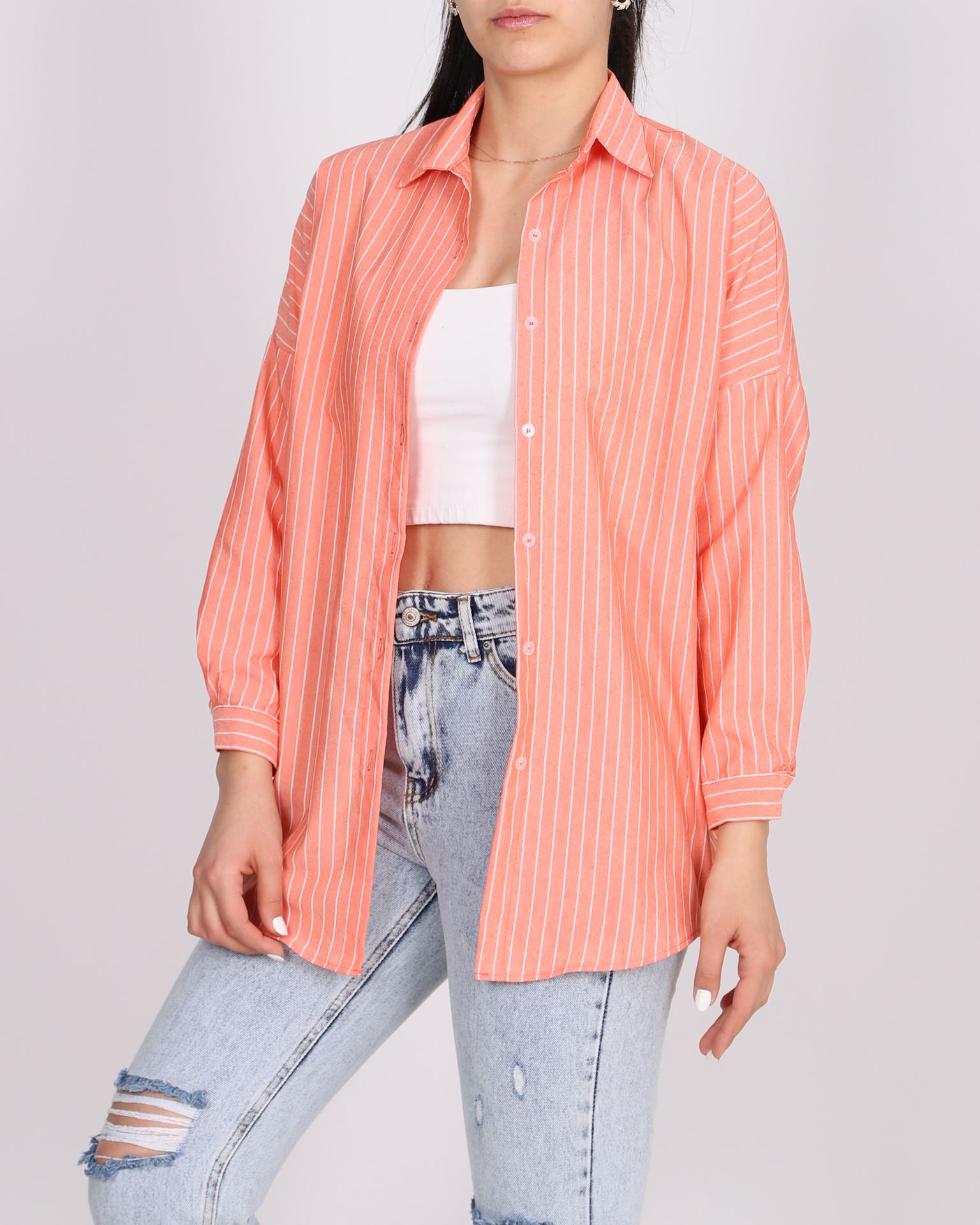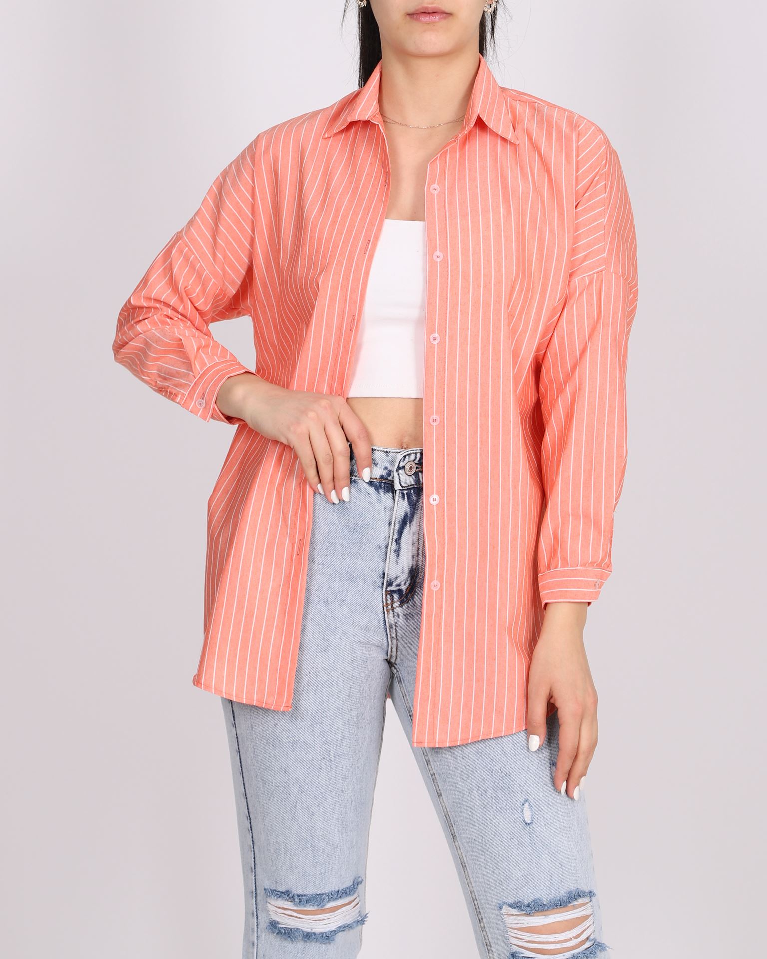 Turuncu İnce Çizgili Oversize Gömlek GML112