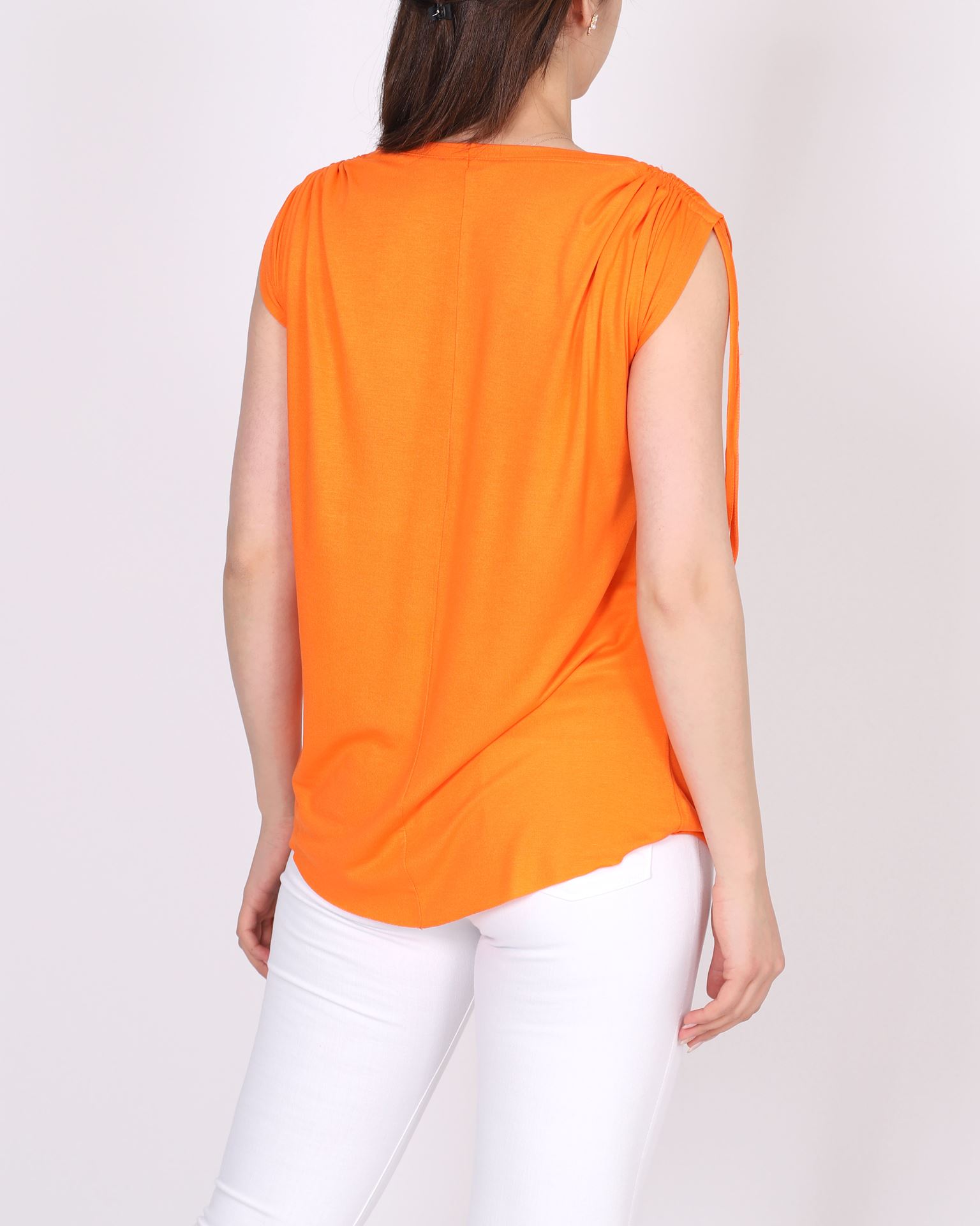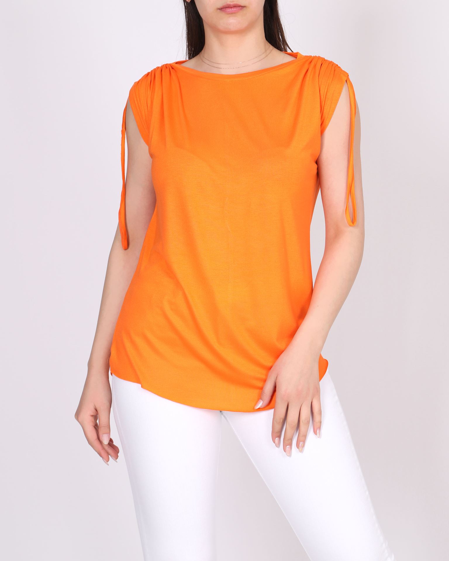 Turuncu Omuz Büzgülü Viskon Bluz BLZ366