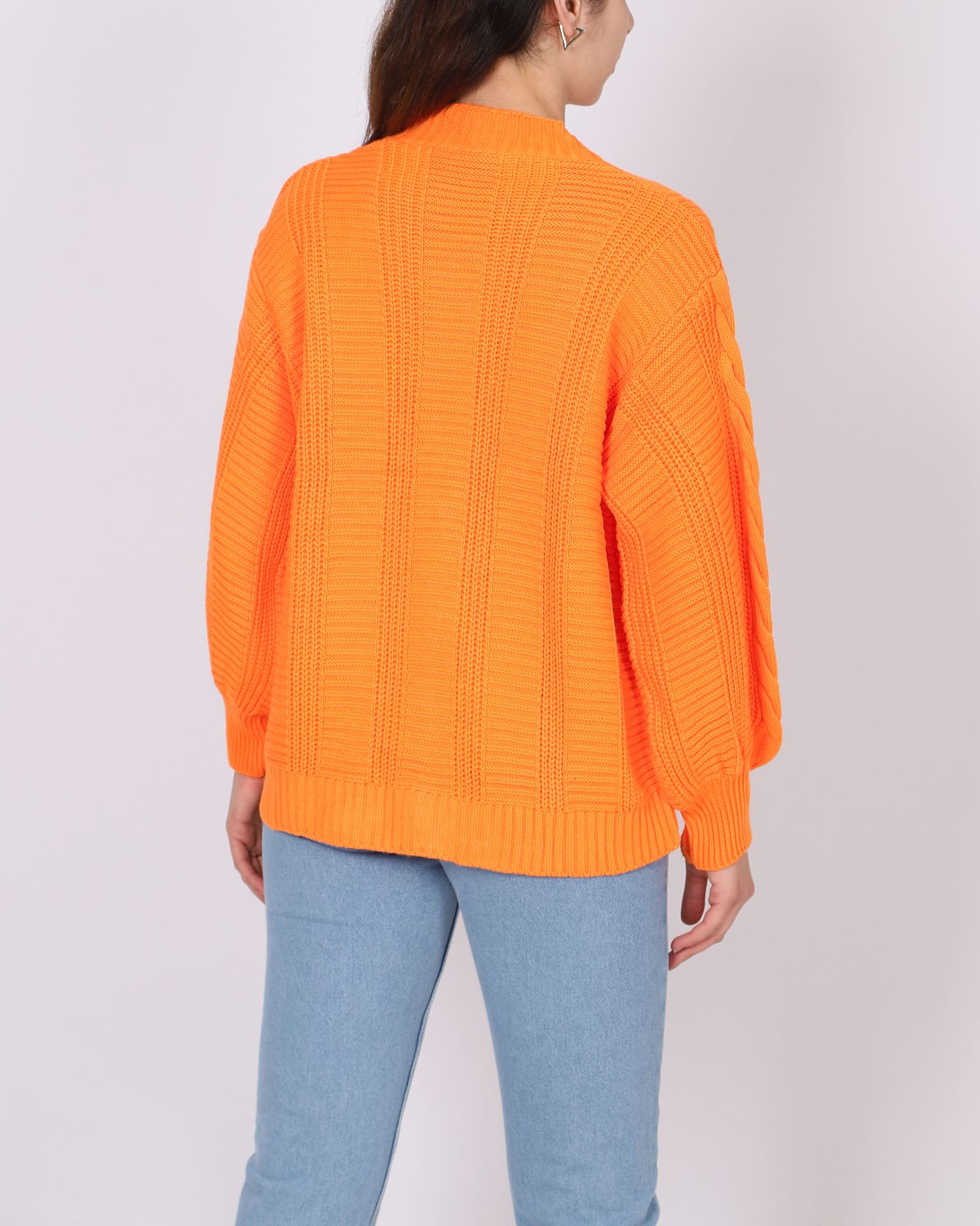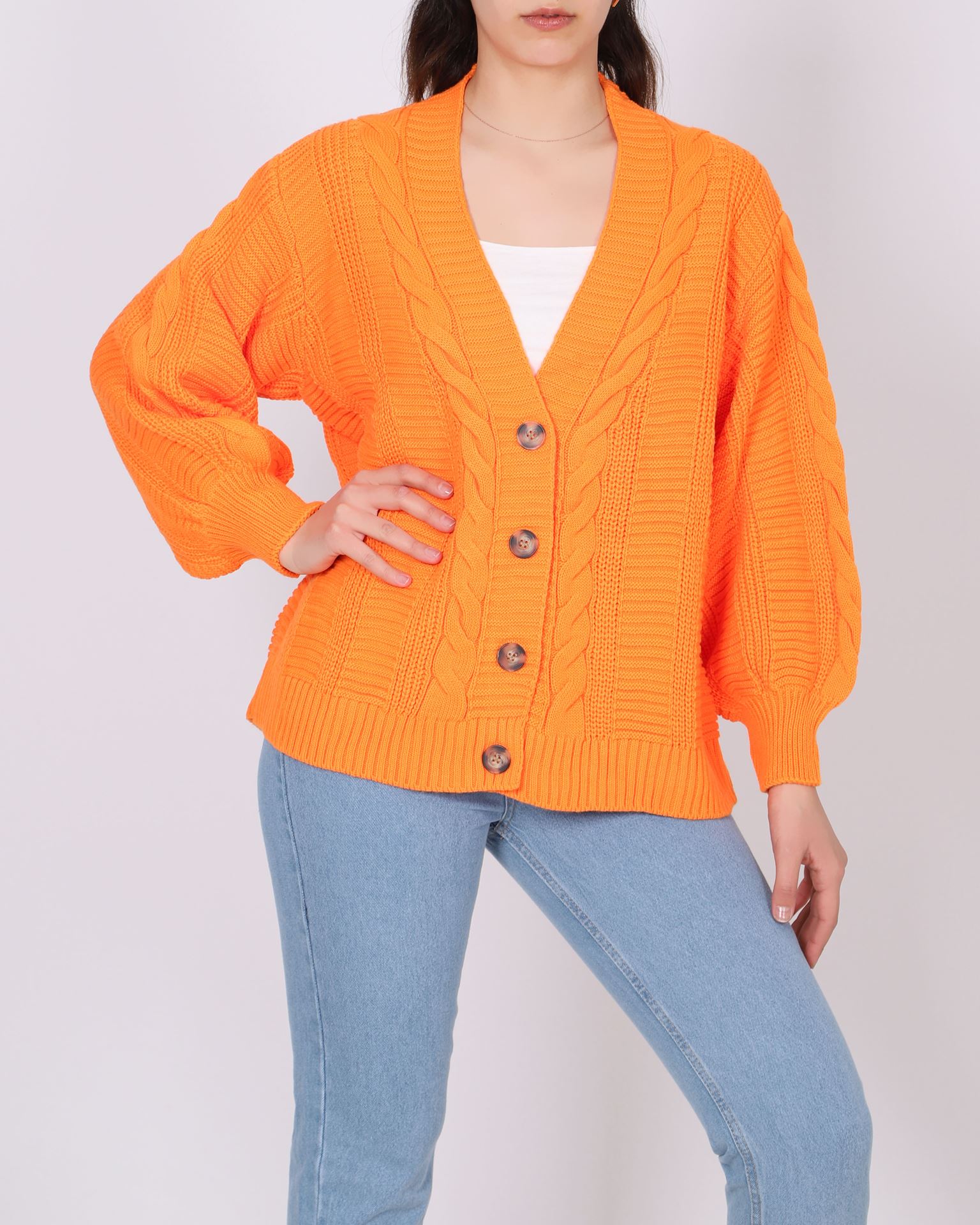 Turuncu Saç Örgülü Triko Hırka HRK544