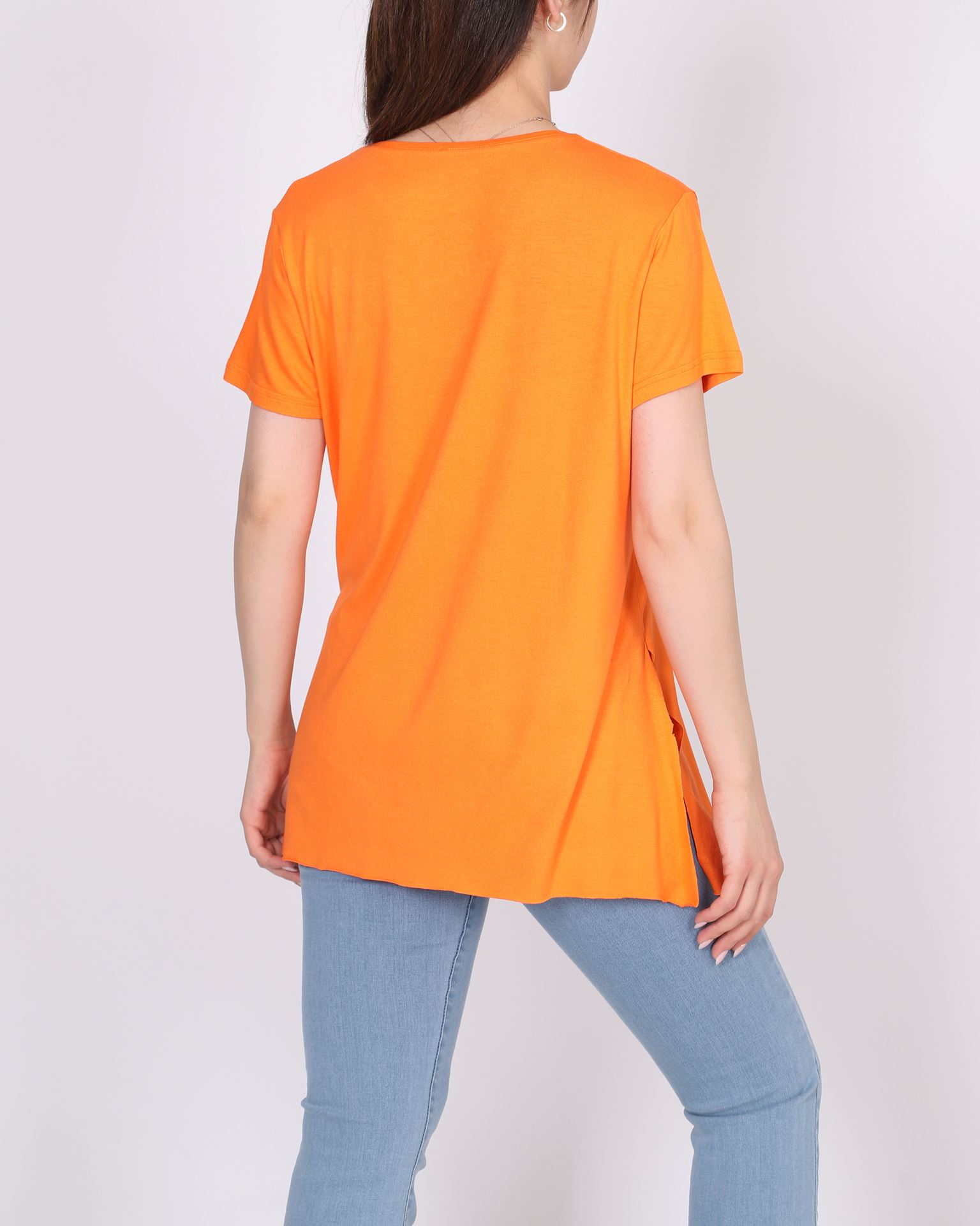 Turuncu V Yaka Yırtmaçlı T-shirt TSH377