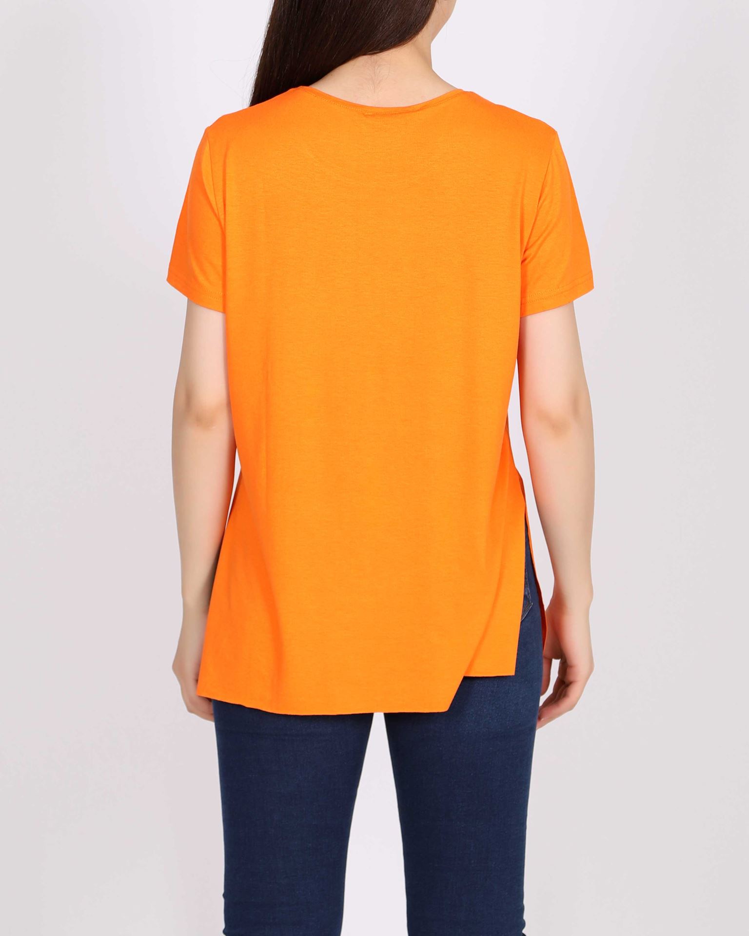 Turuncu Yandan Yırtmaçlı T-shirt TSH336