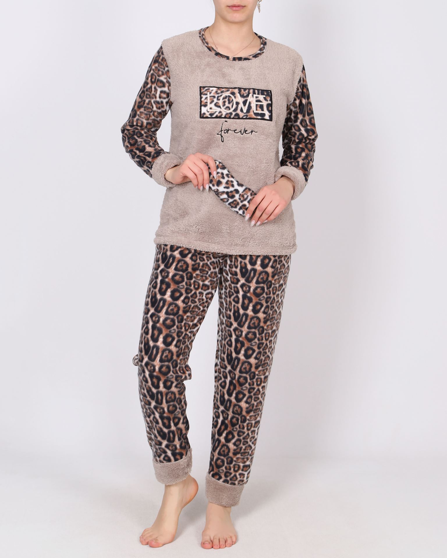Uyku Bantlı Peluş Garnili Pijama Takımı PJM1863