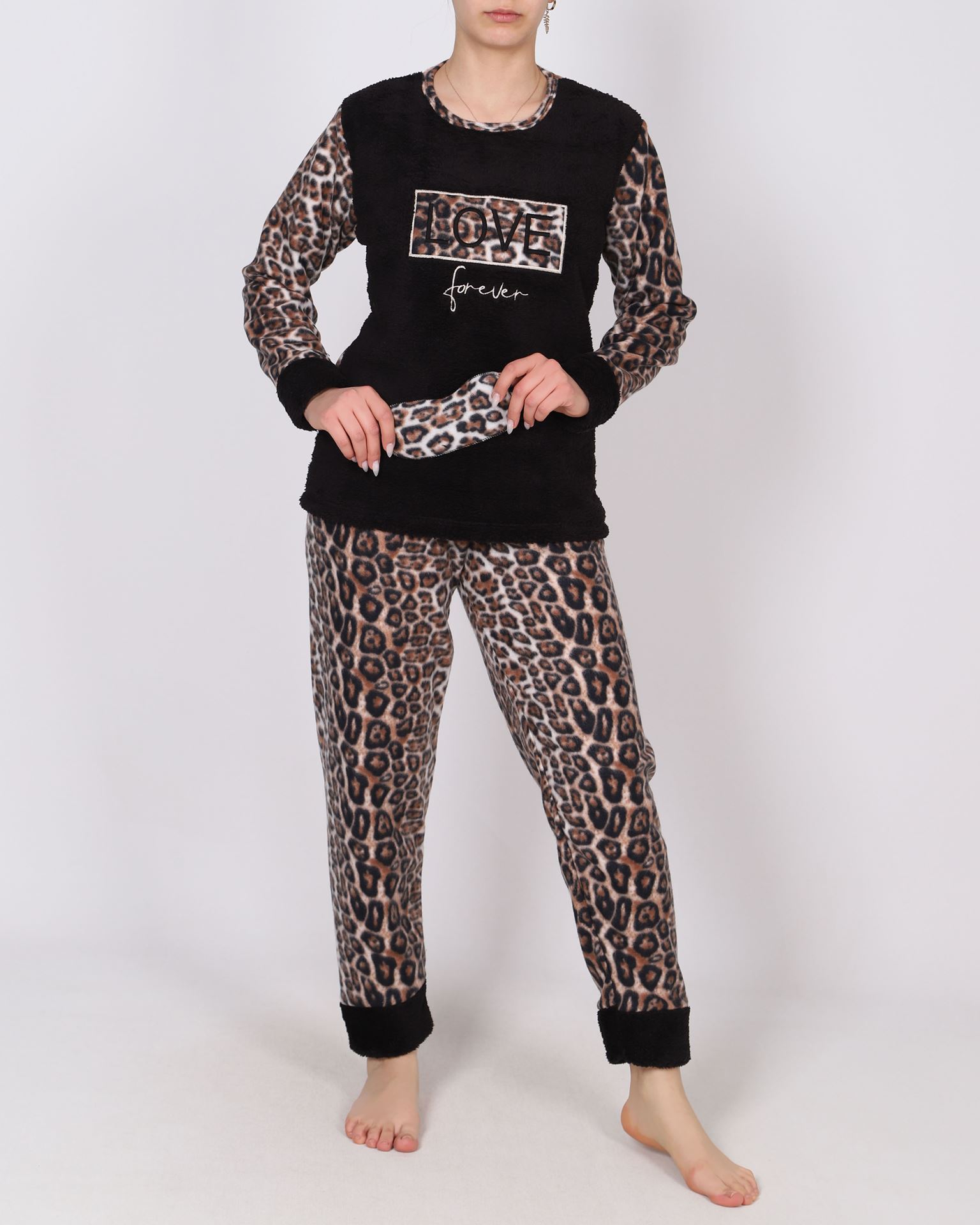 Uyku Bantlı Peluş Garnili Pijama Takımı PJM1864