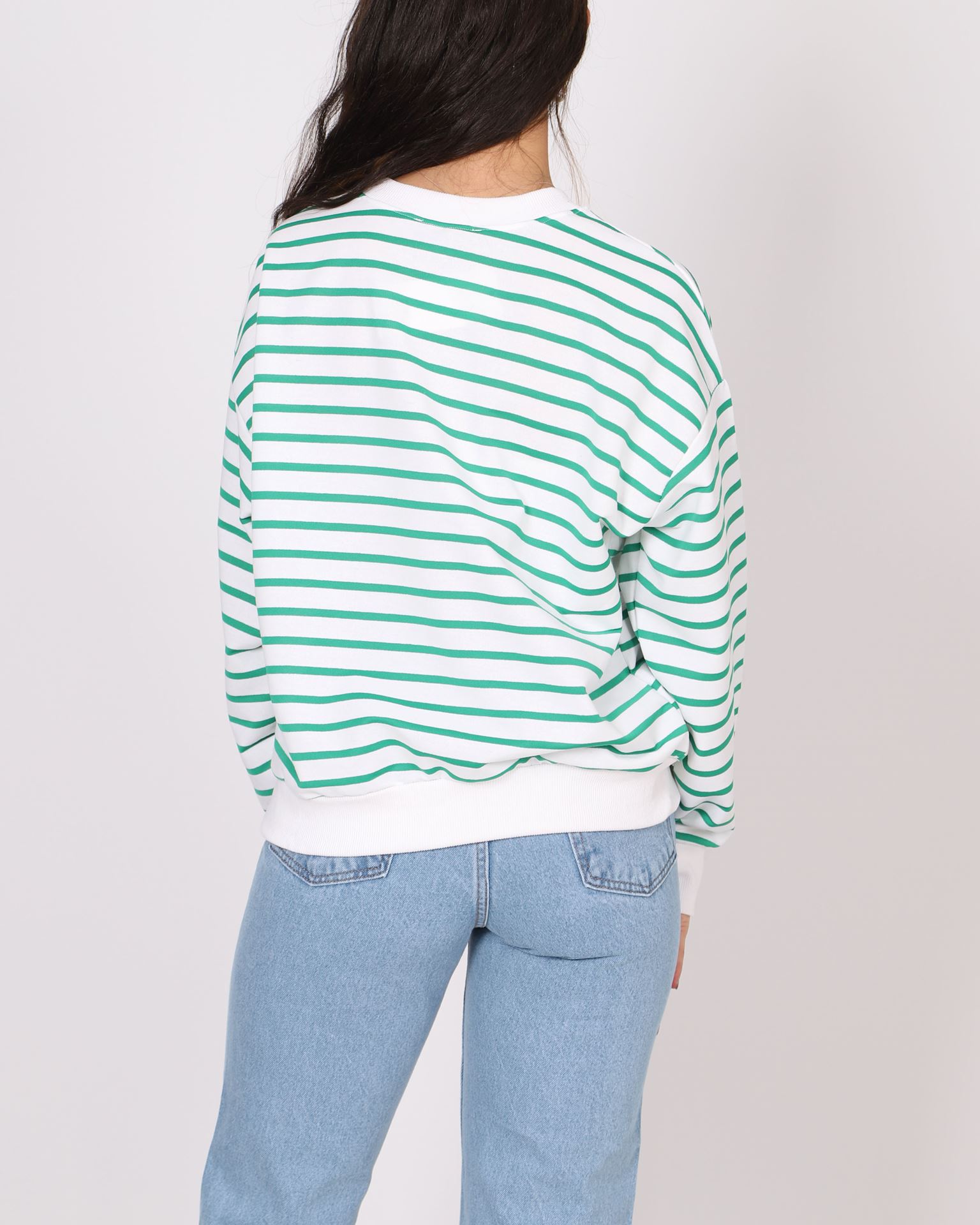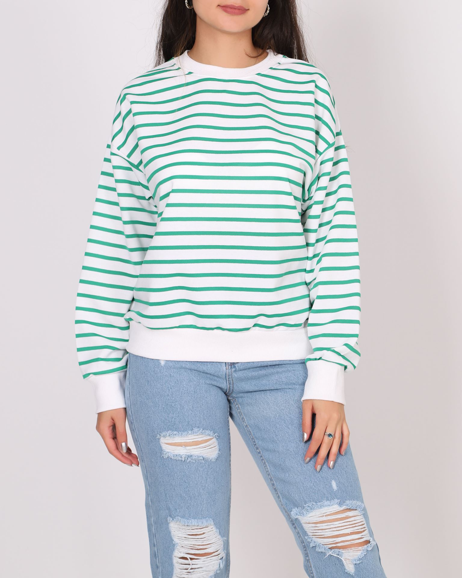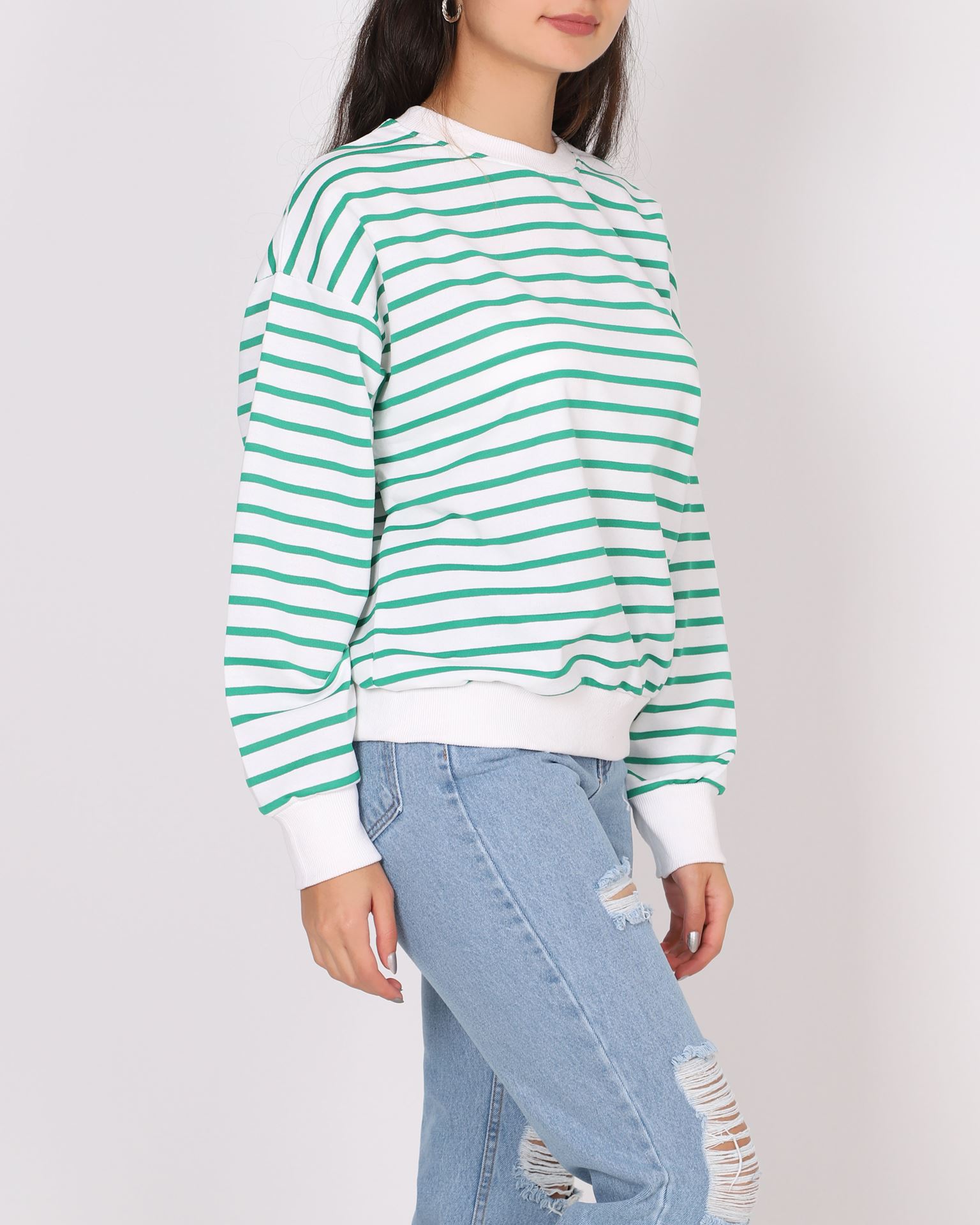 Yeşil Çizgili Bisiklet Yaka Sweat SWT763