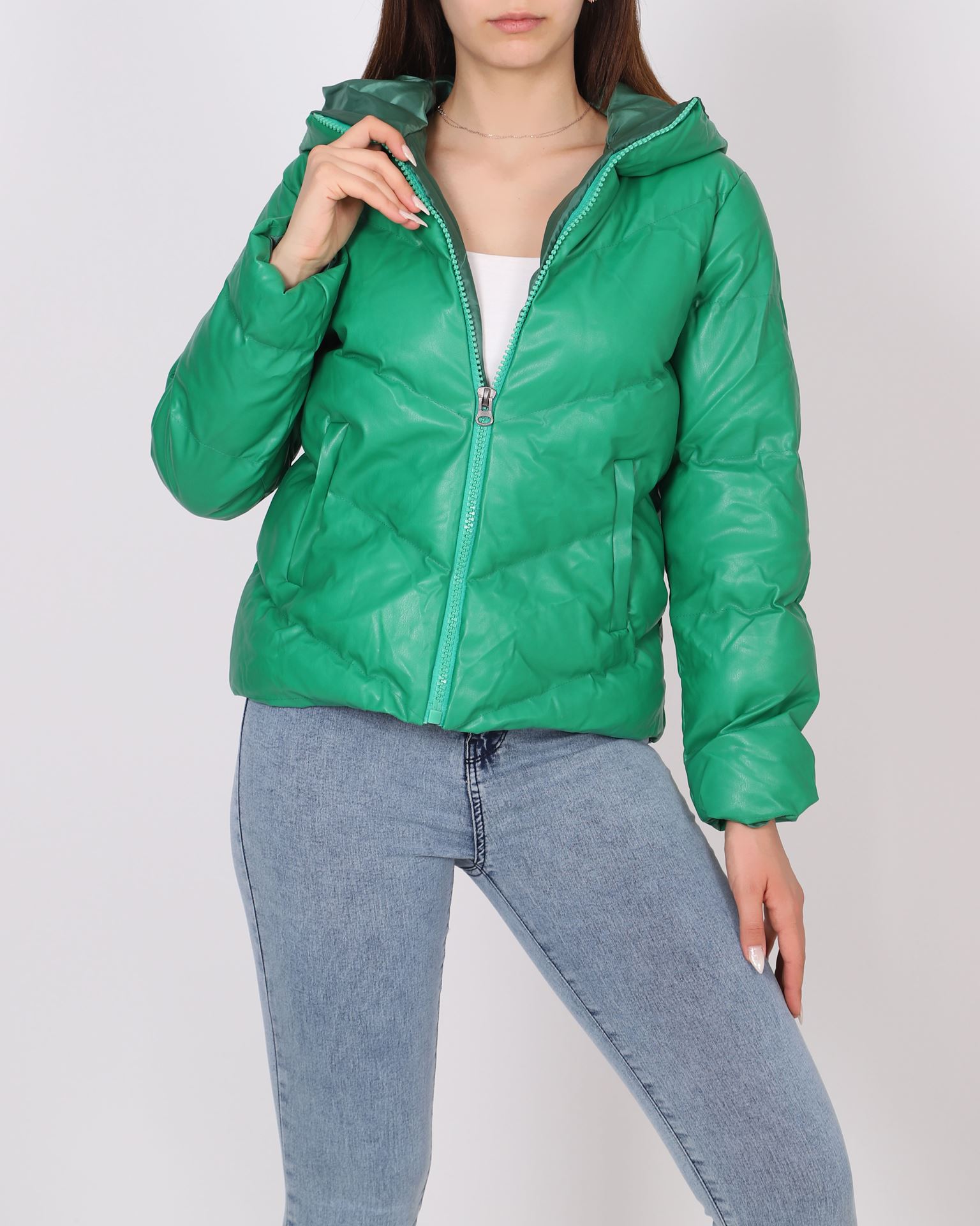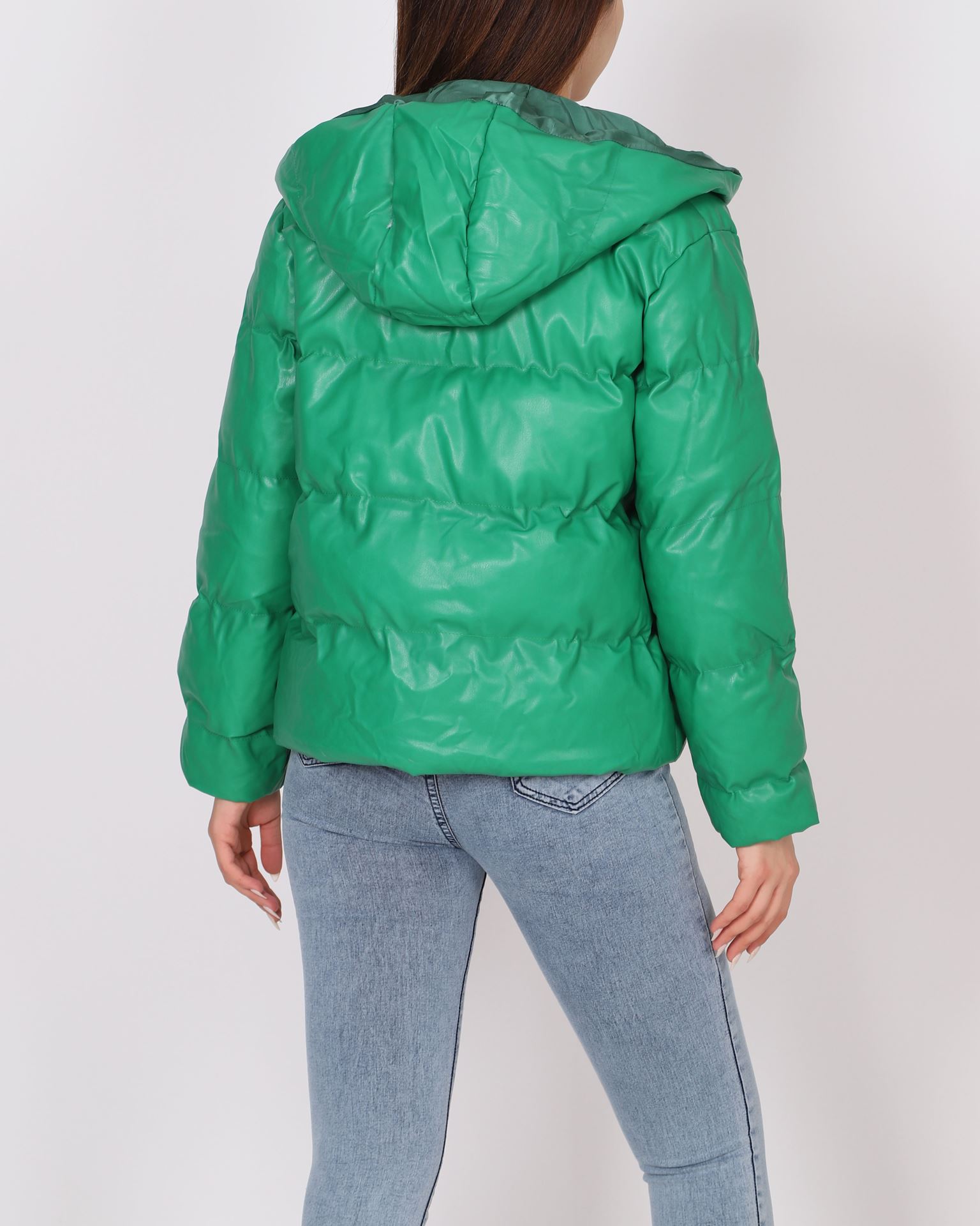 Yeşil Deri Şişme Mont MNT096