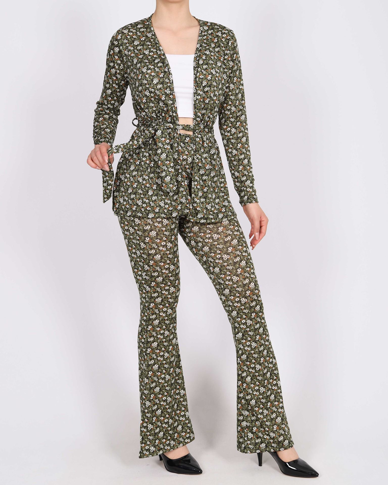 Yeşil Desenli Ceket Pantolon Takım TKM1985