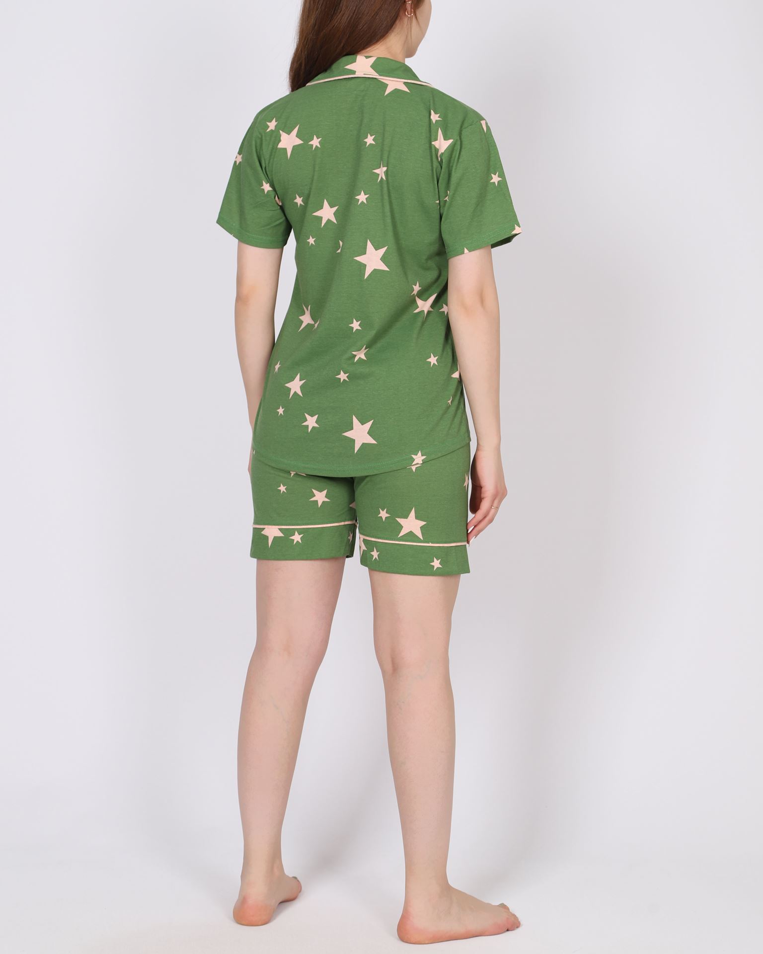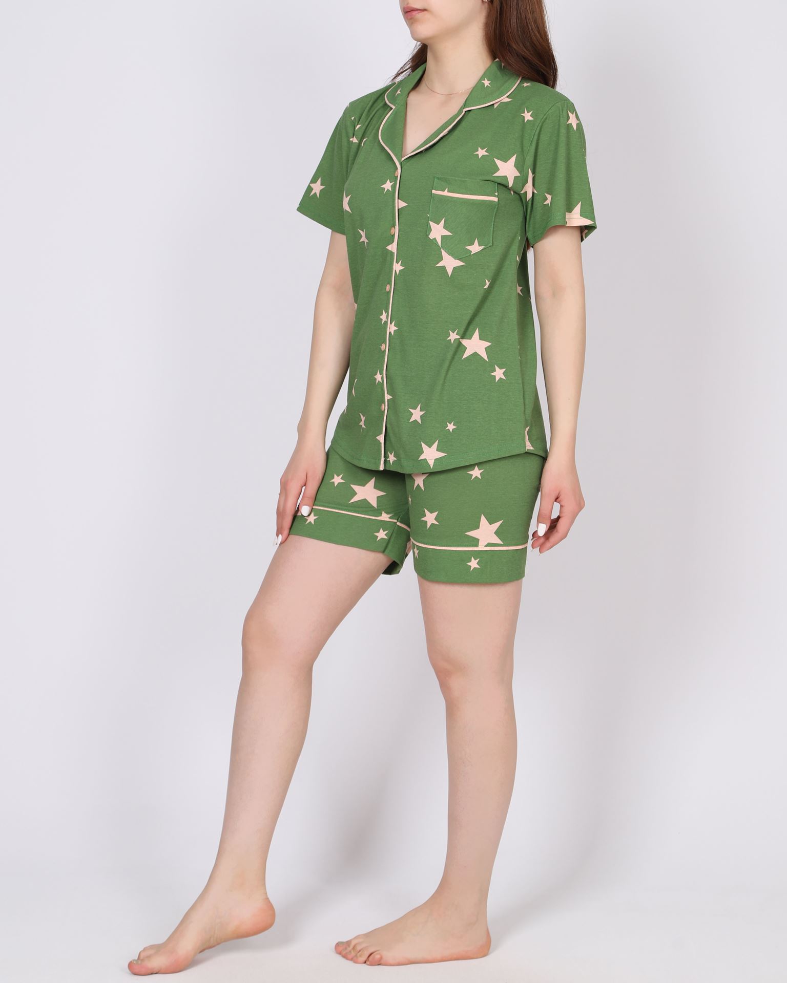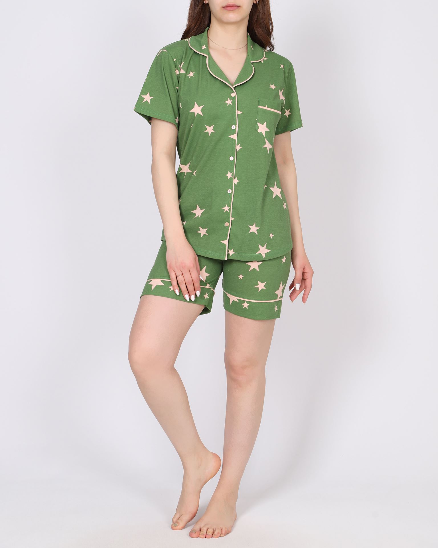 Yeşil Desenli Şortlu Pijama Takımı PJM1624