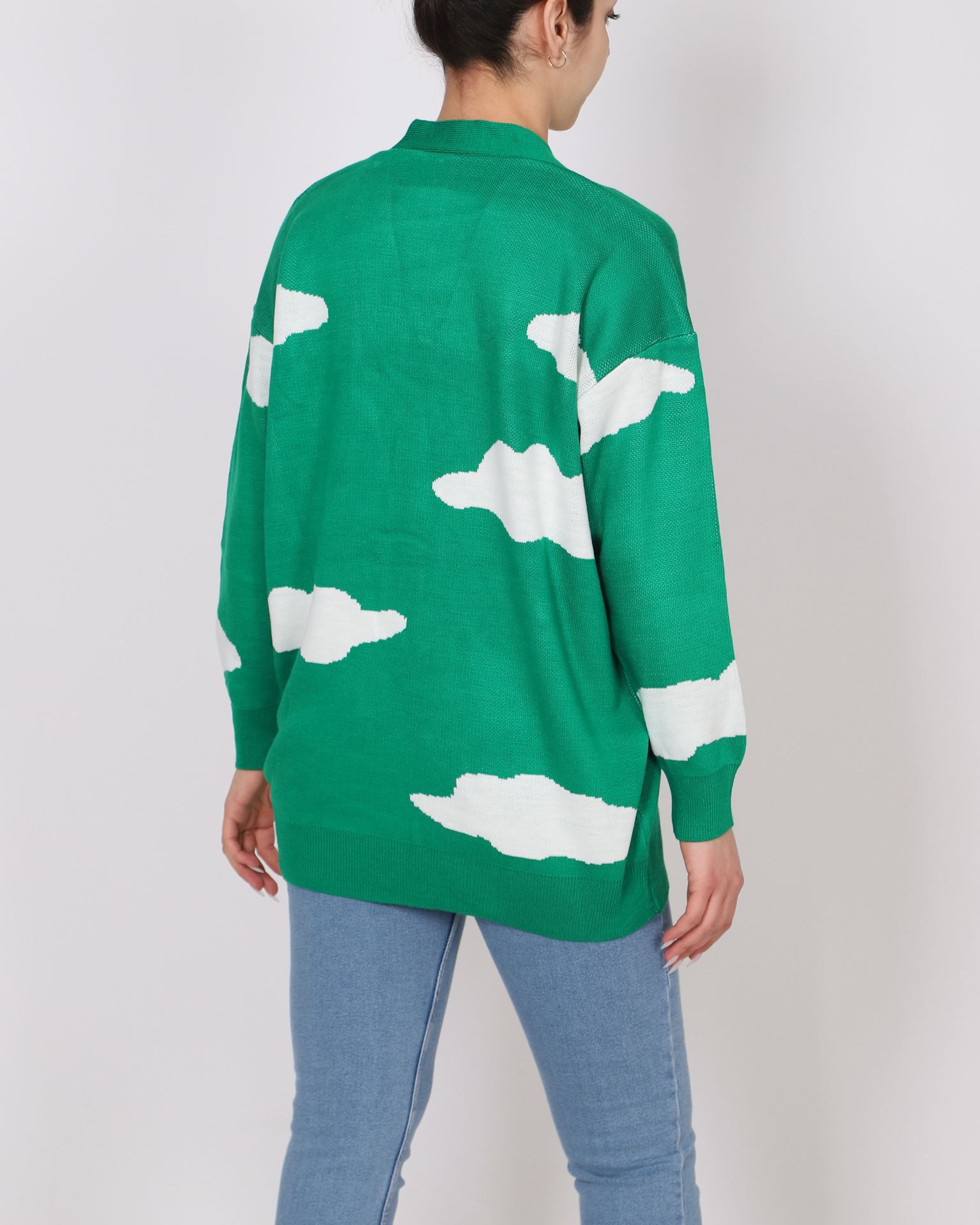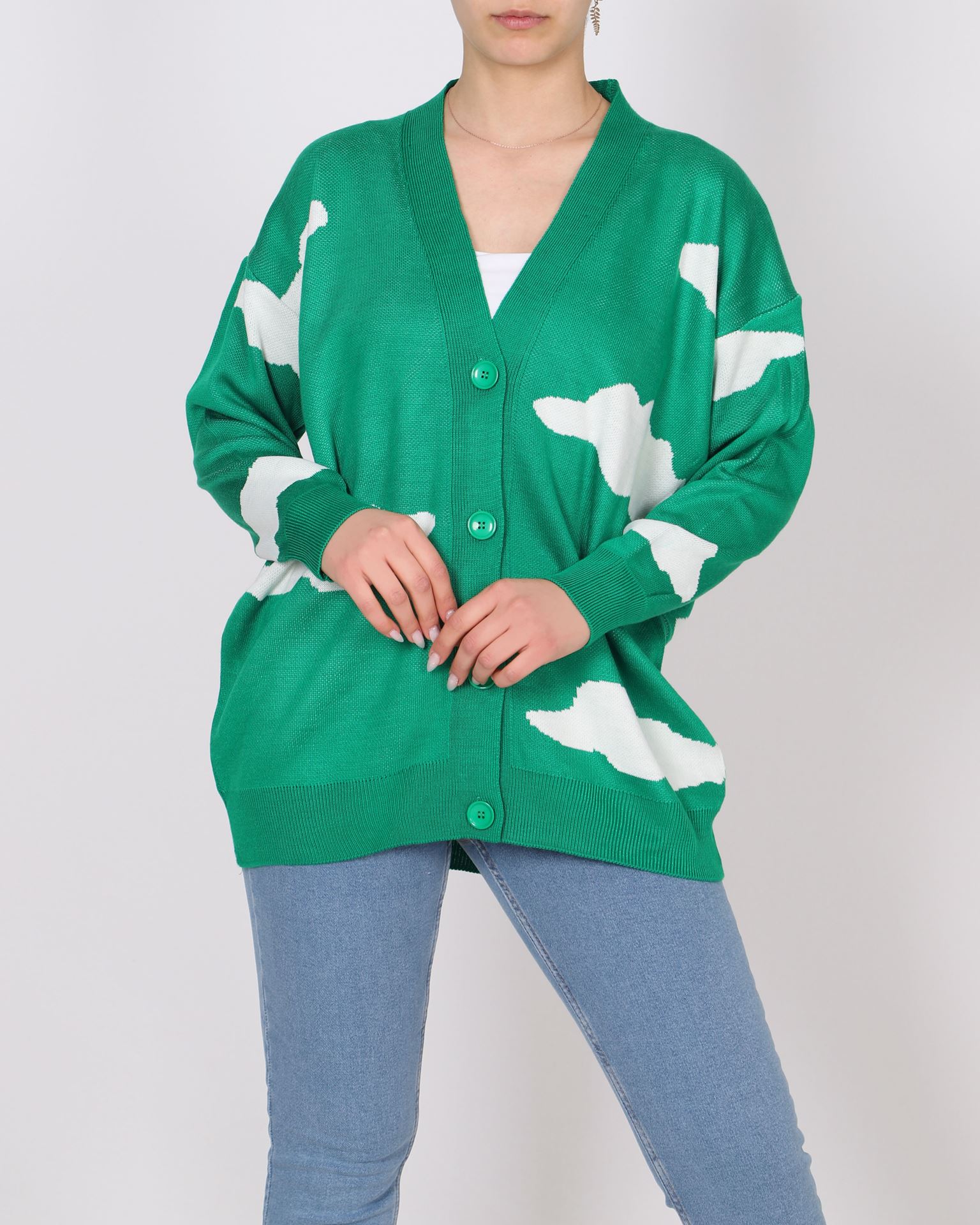 Yeşil Desenli Triko Hırka HRK551