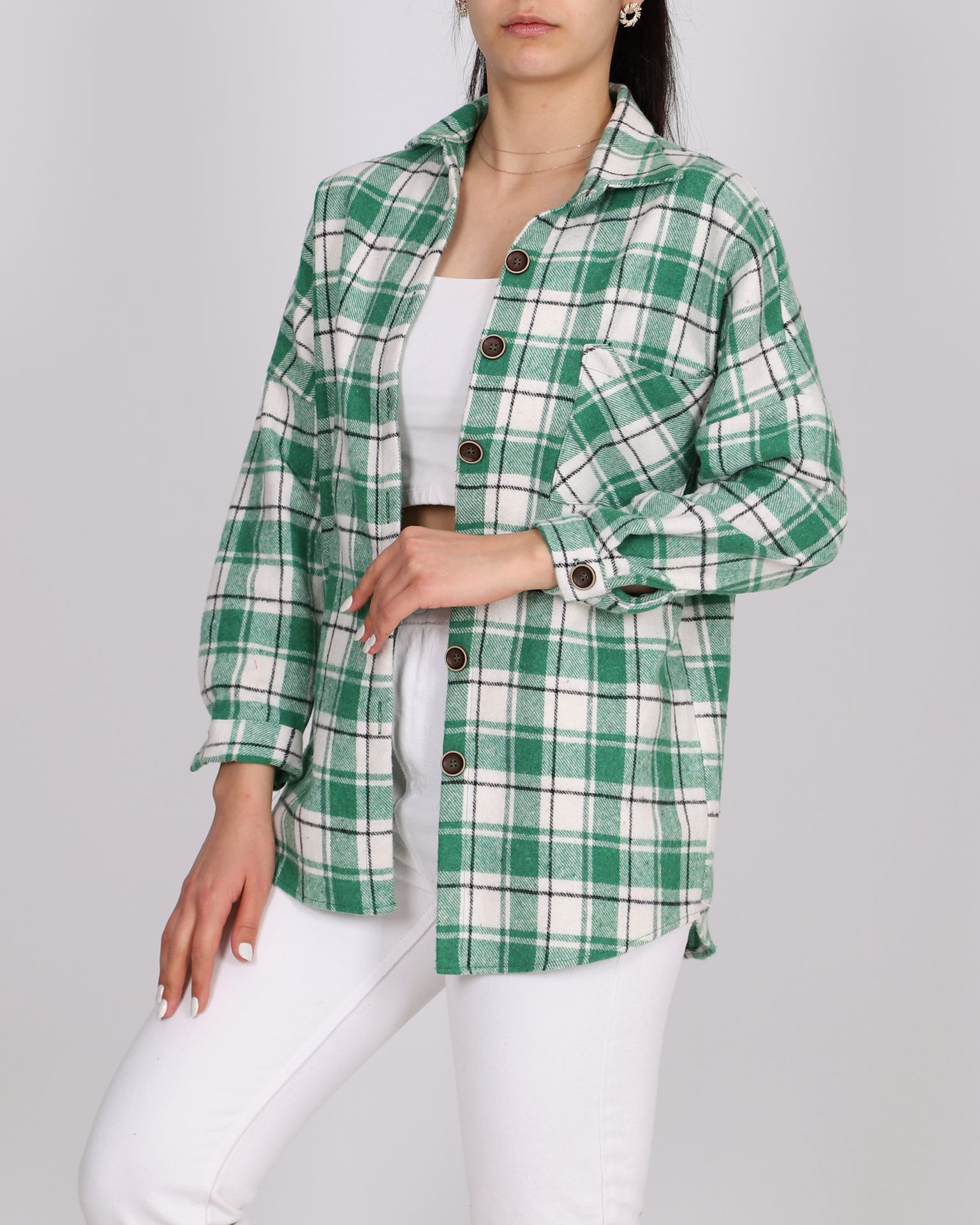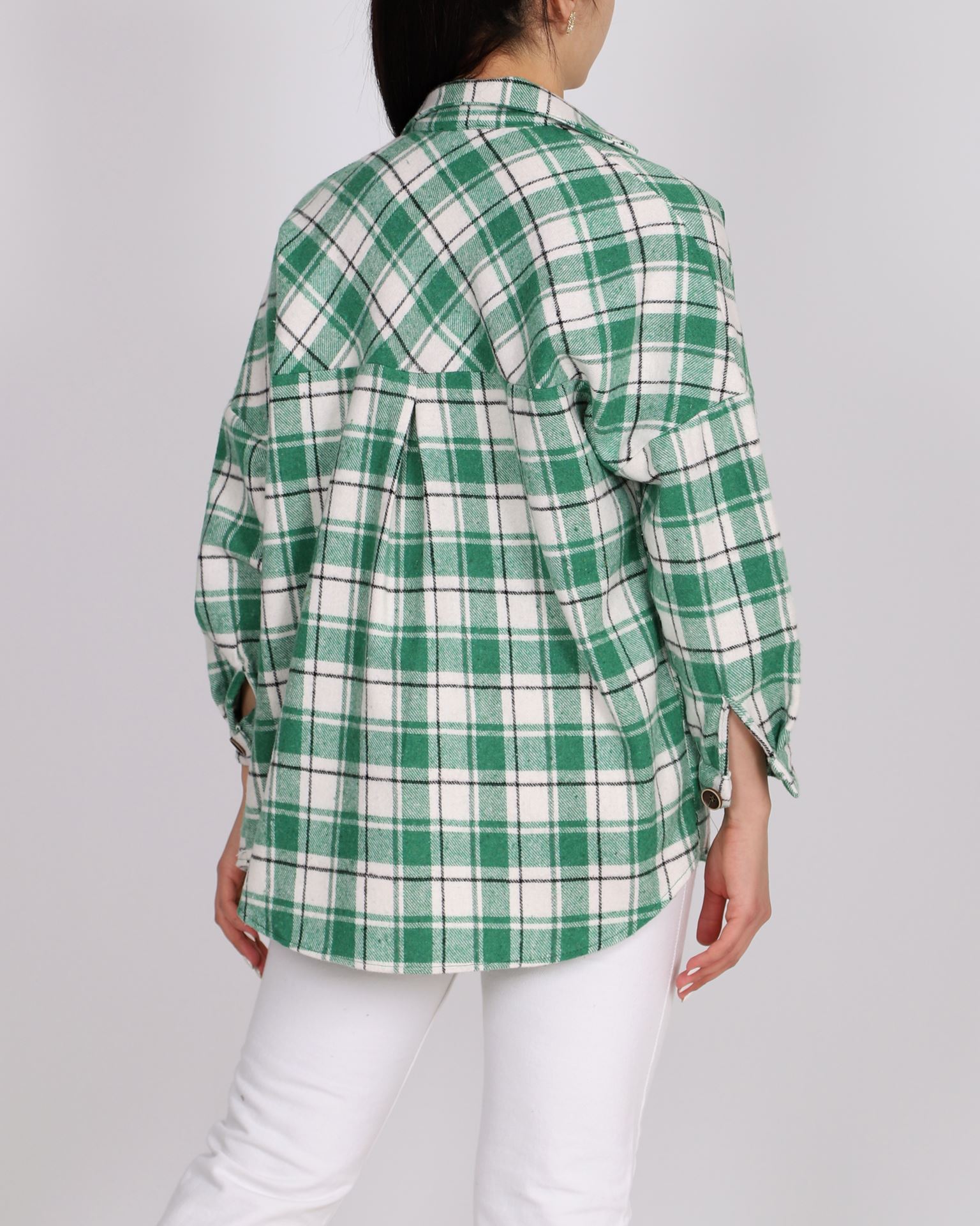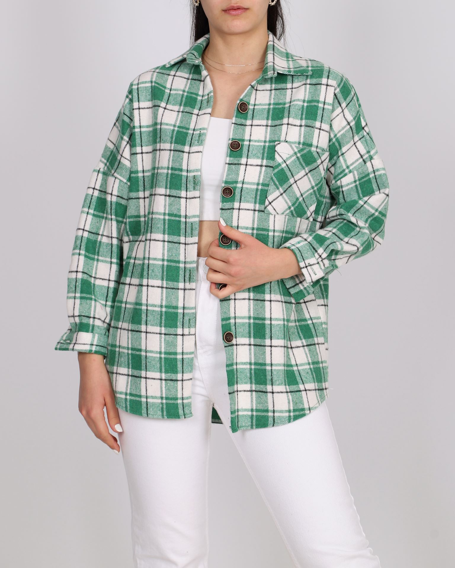 Yeşil Ekose Desen Oversize Cepli Gömlek GML104
