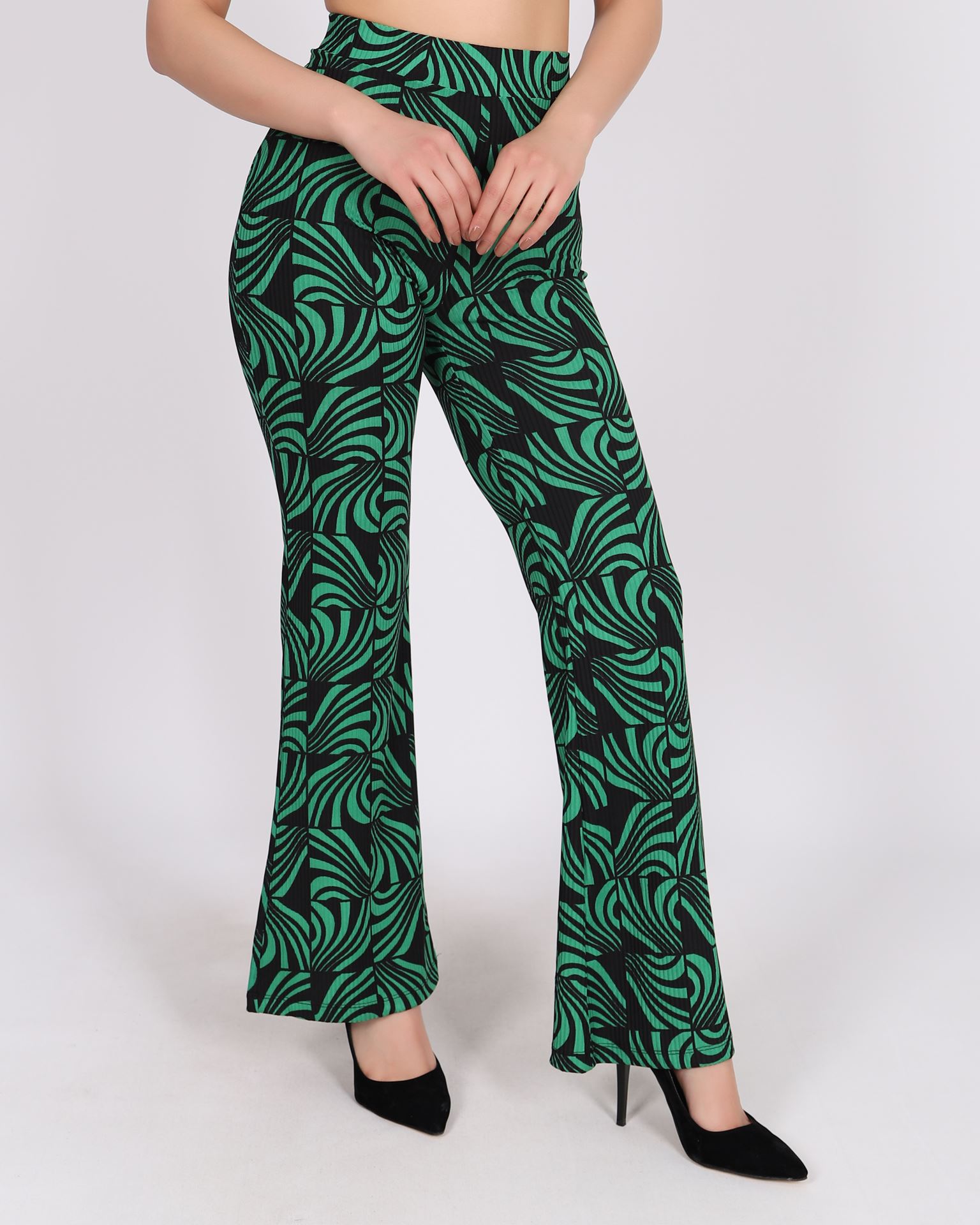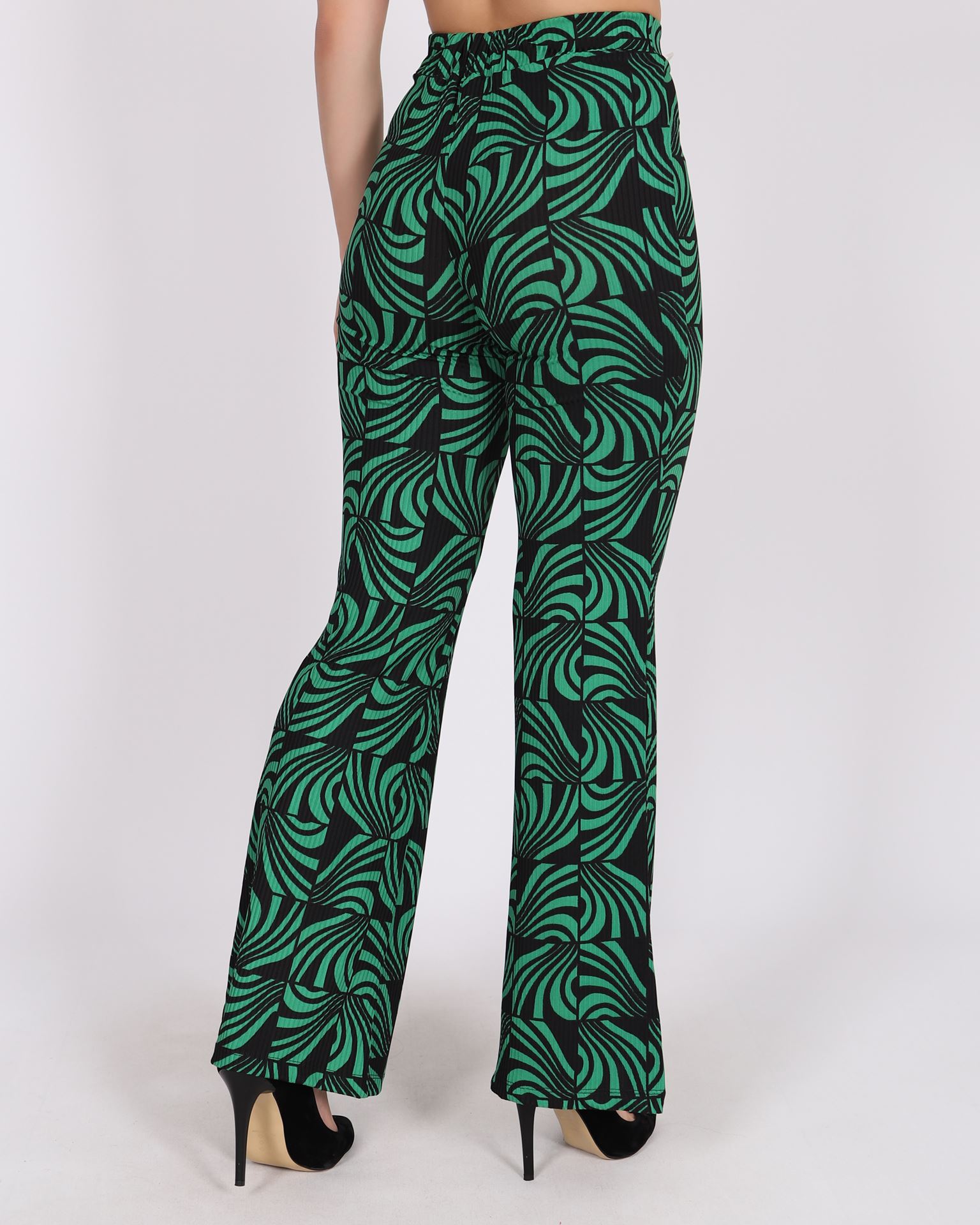 Yeşil İspanyol Paça Desenli Pantolon PNT336