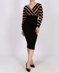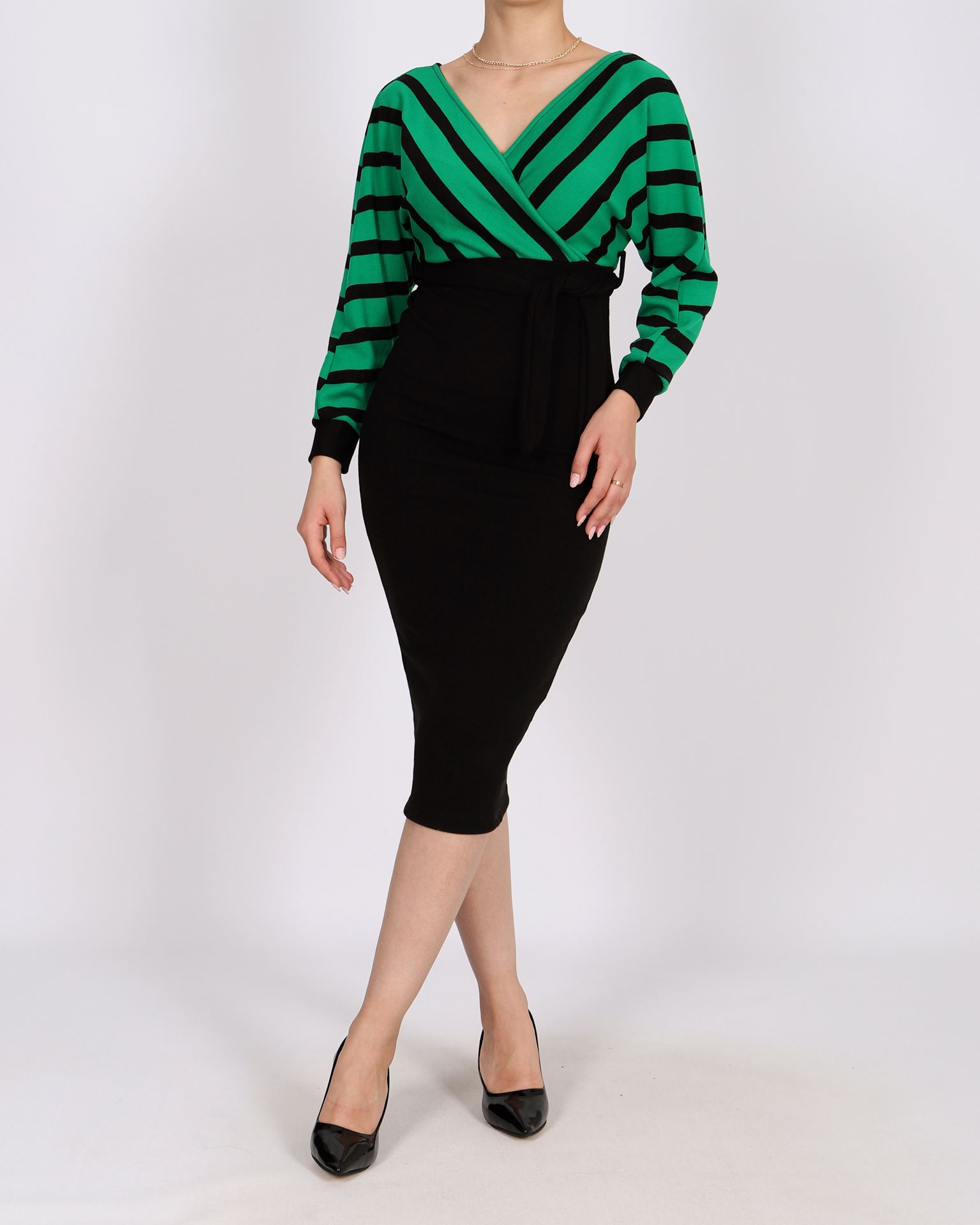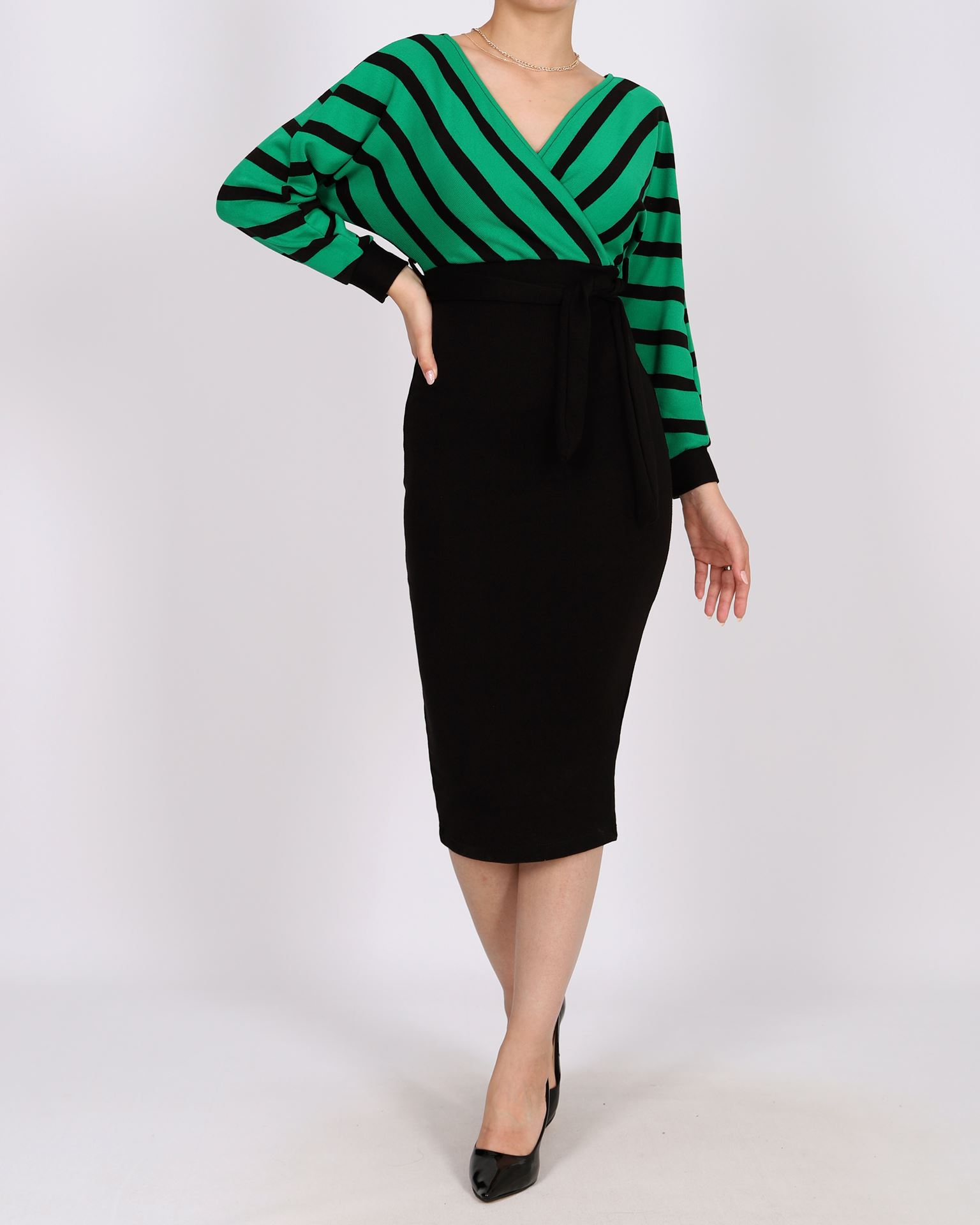 Yeşil Kemerli Çizgili Triko Elbise ELB952
