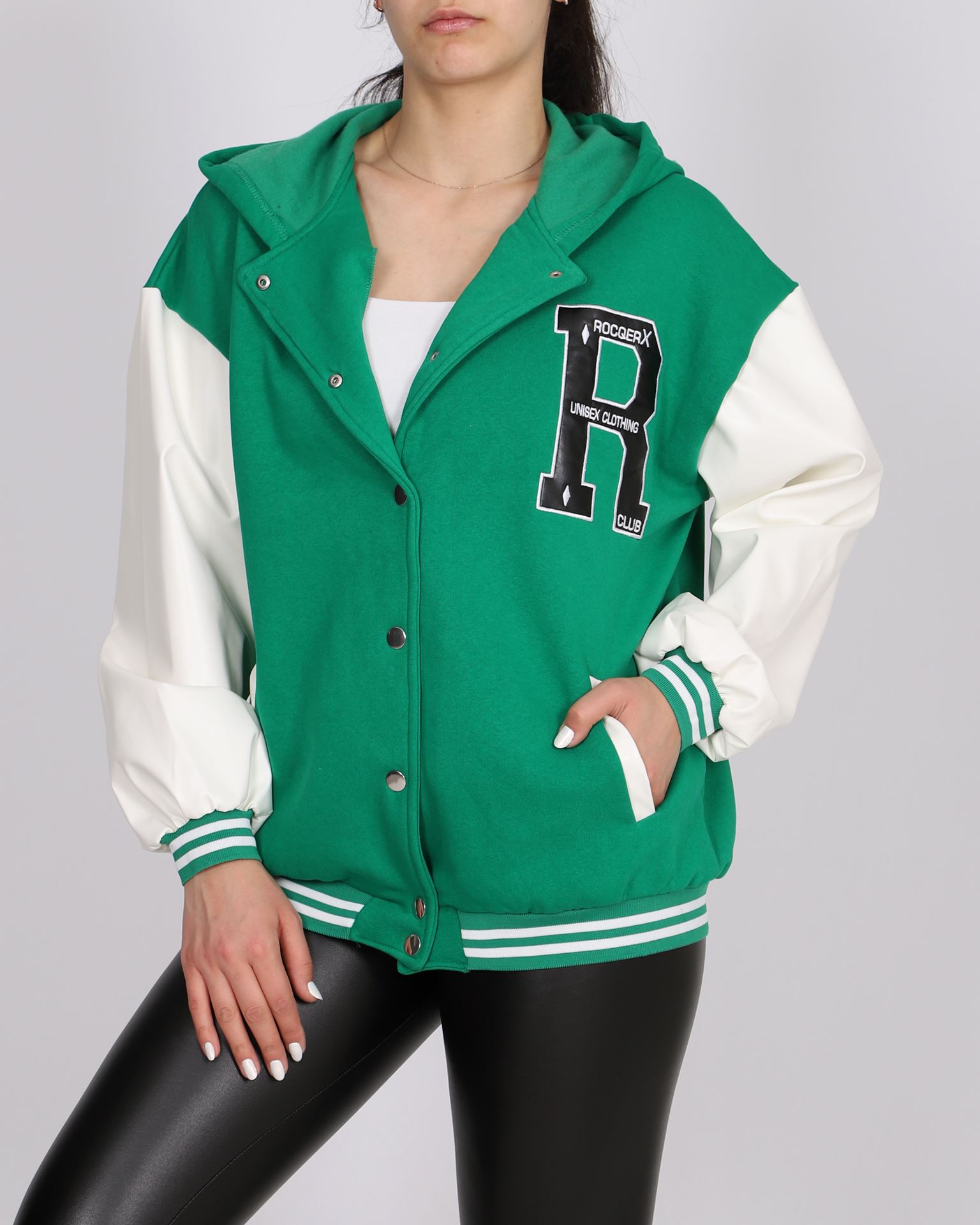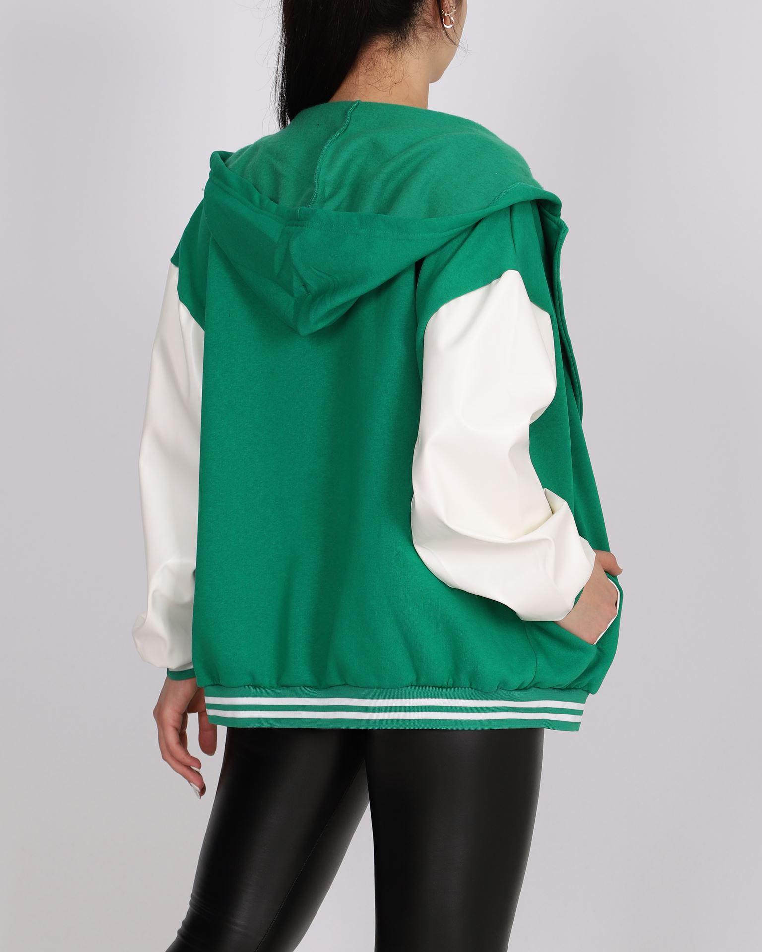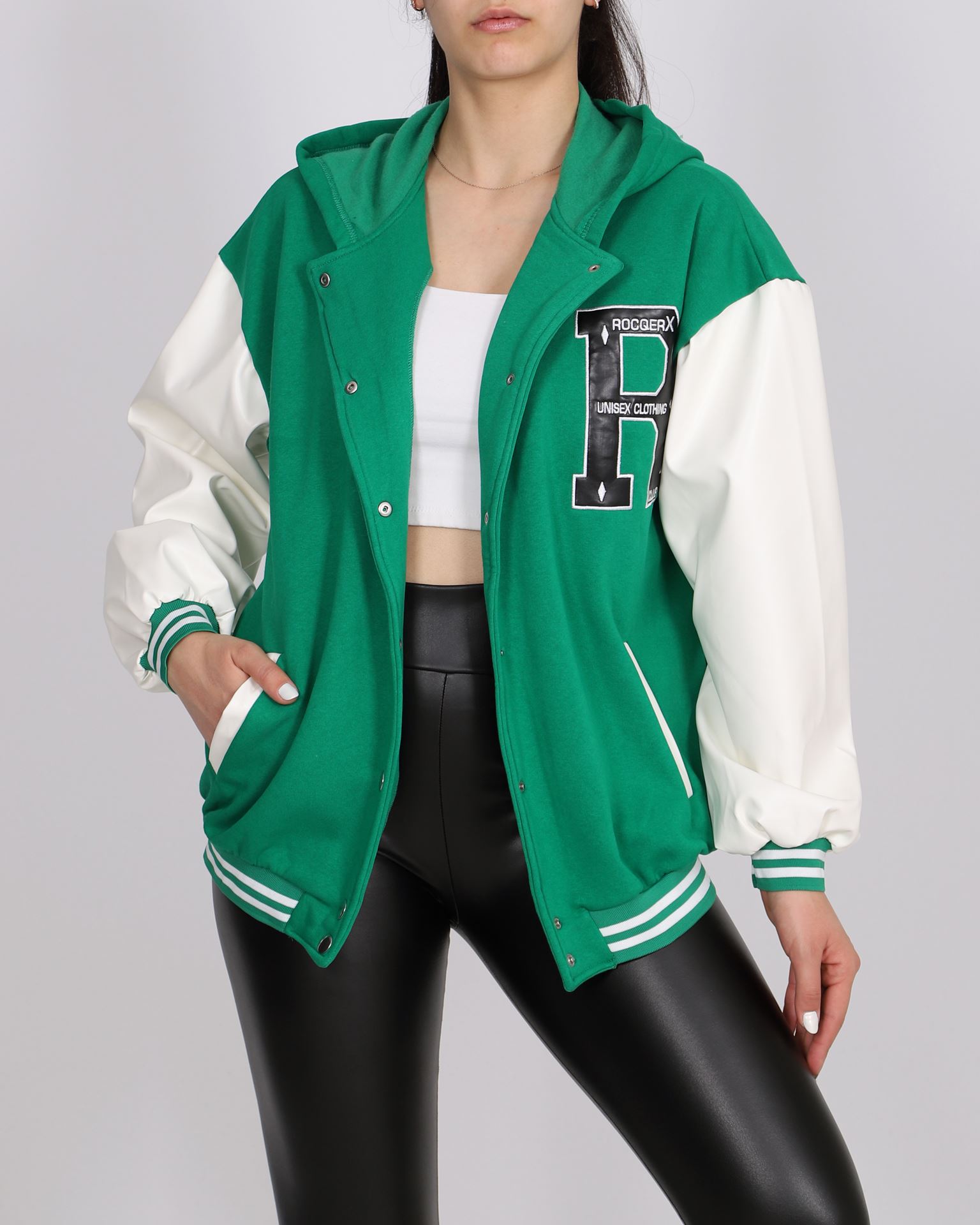 Yeşil Kolları Deri İçi Şardonlu Kolej Ceket CKT398