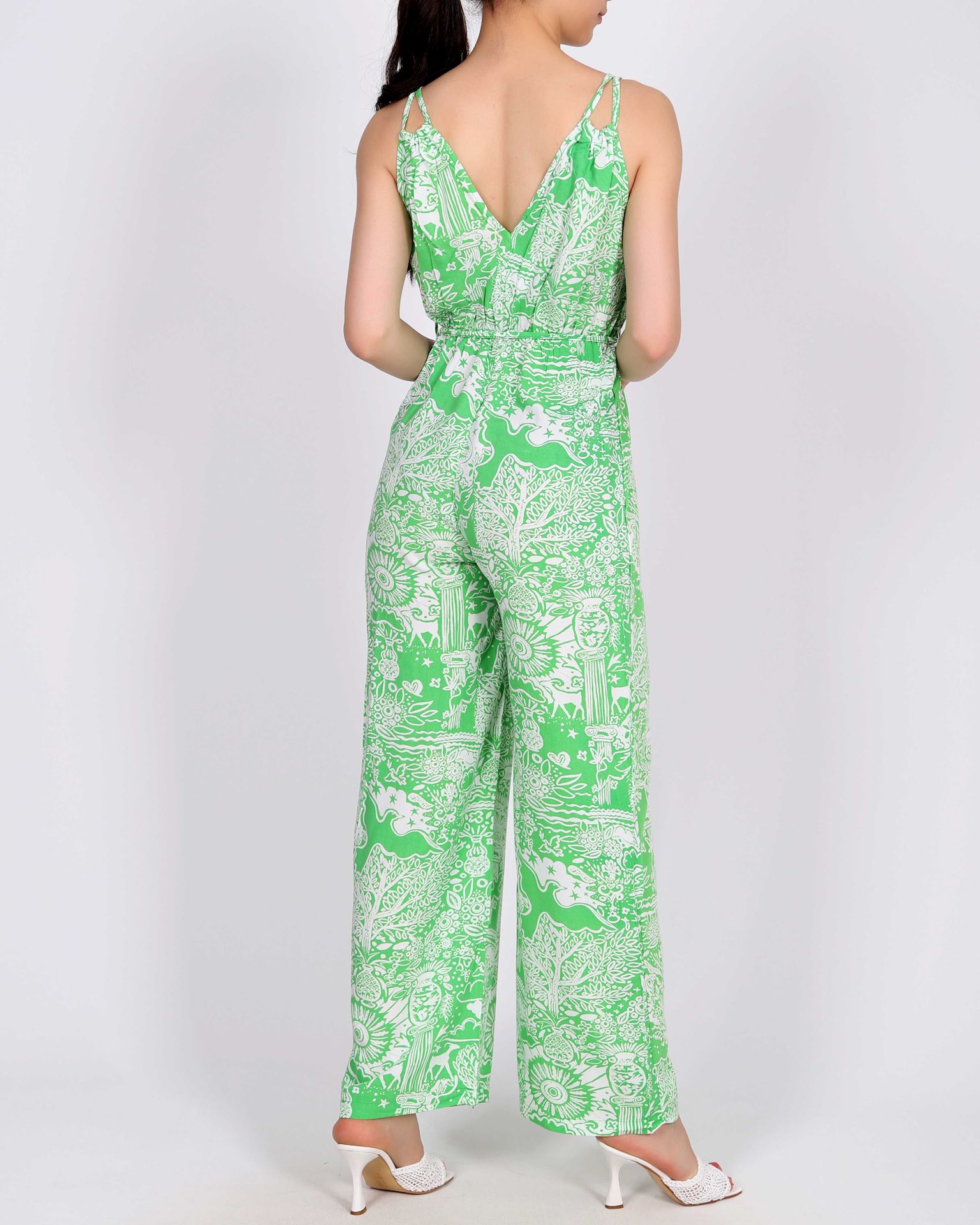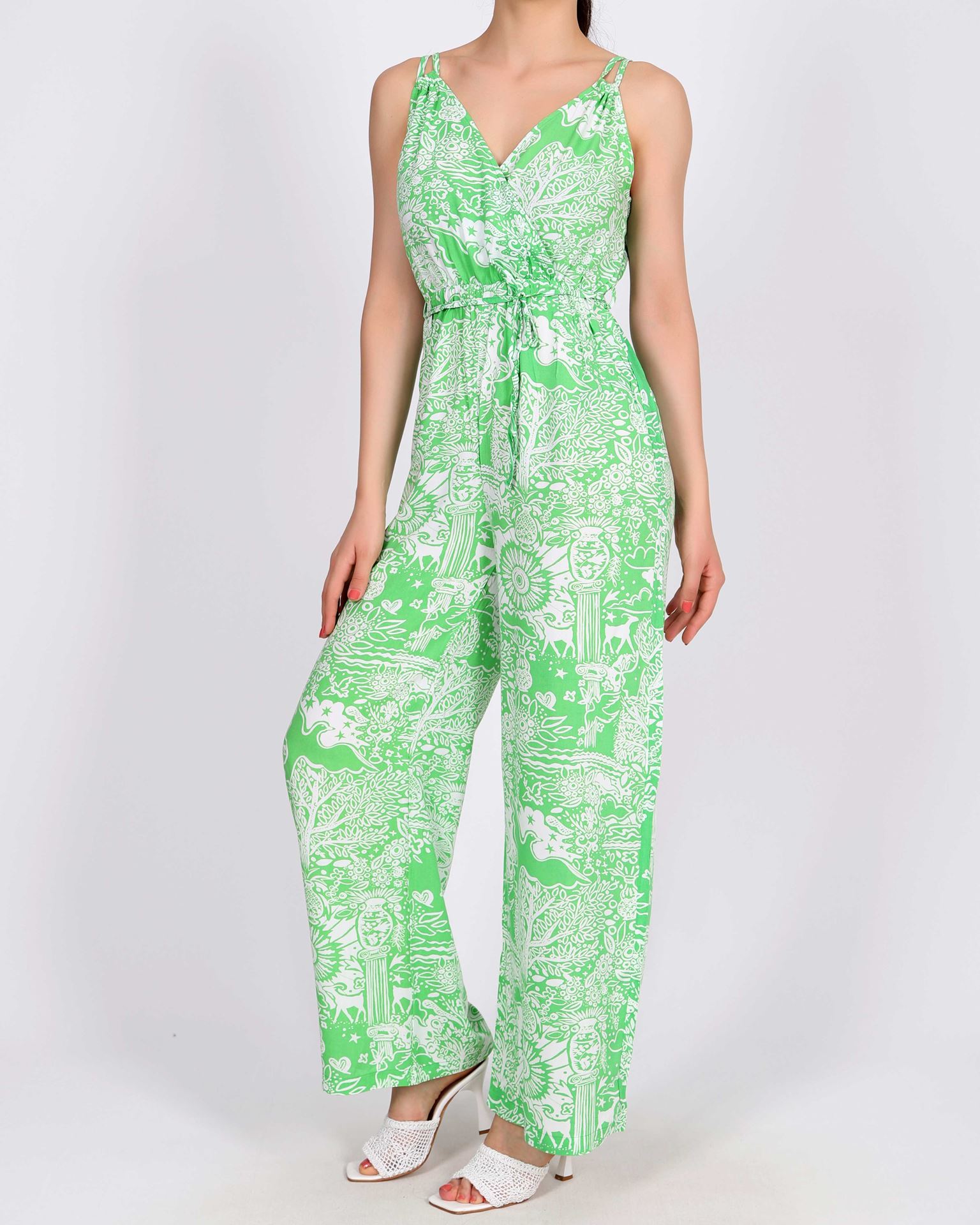 Yeşil Kruvaze Yaka Desenli Tulum TLM405