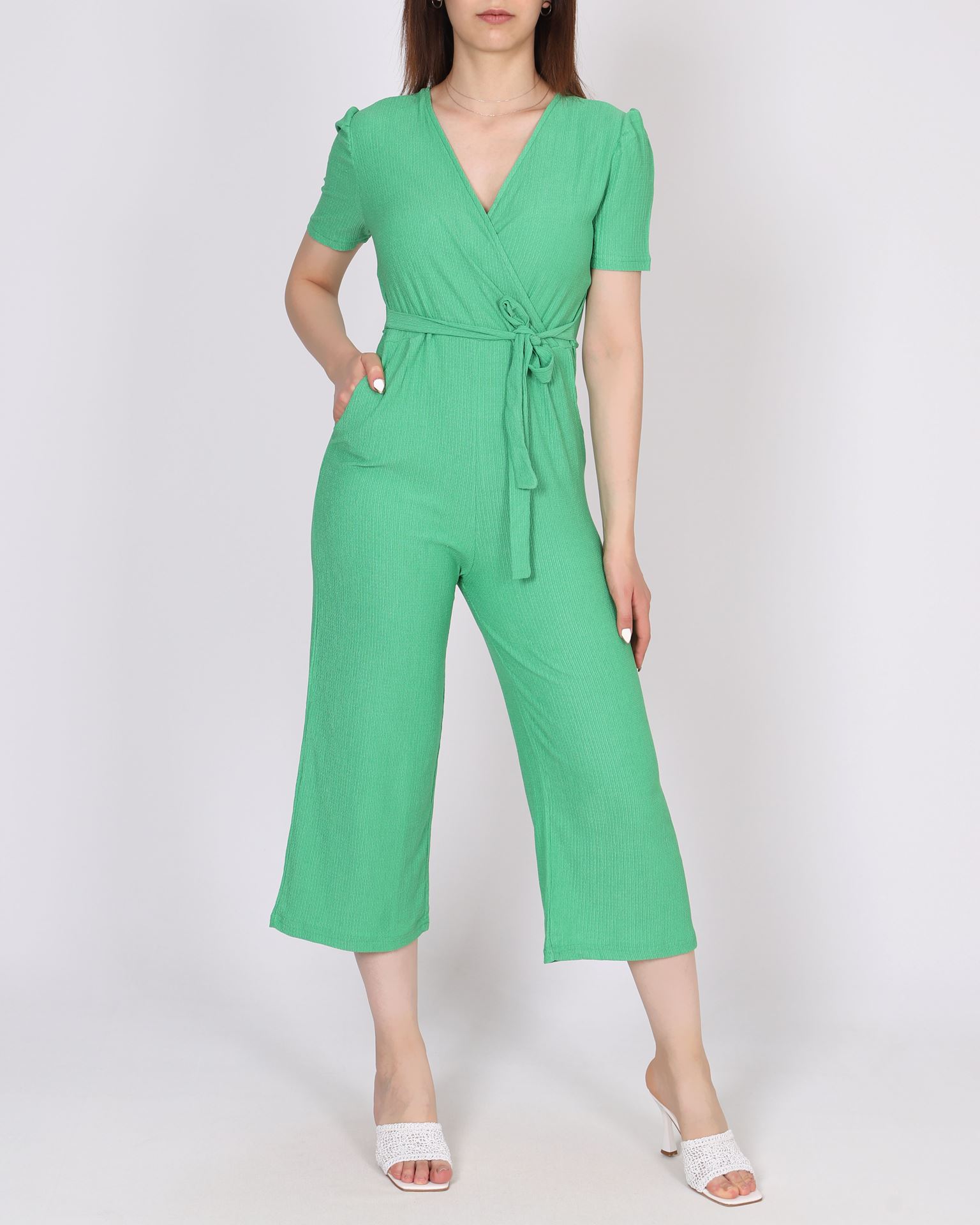 Yeşil Kruvaze Yaka Tulum TLM498
