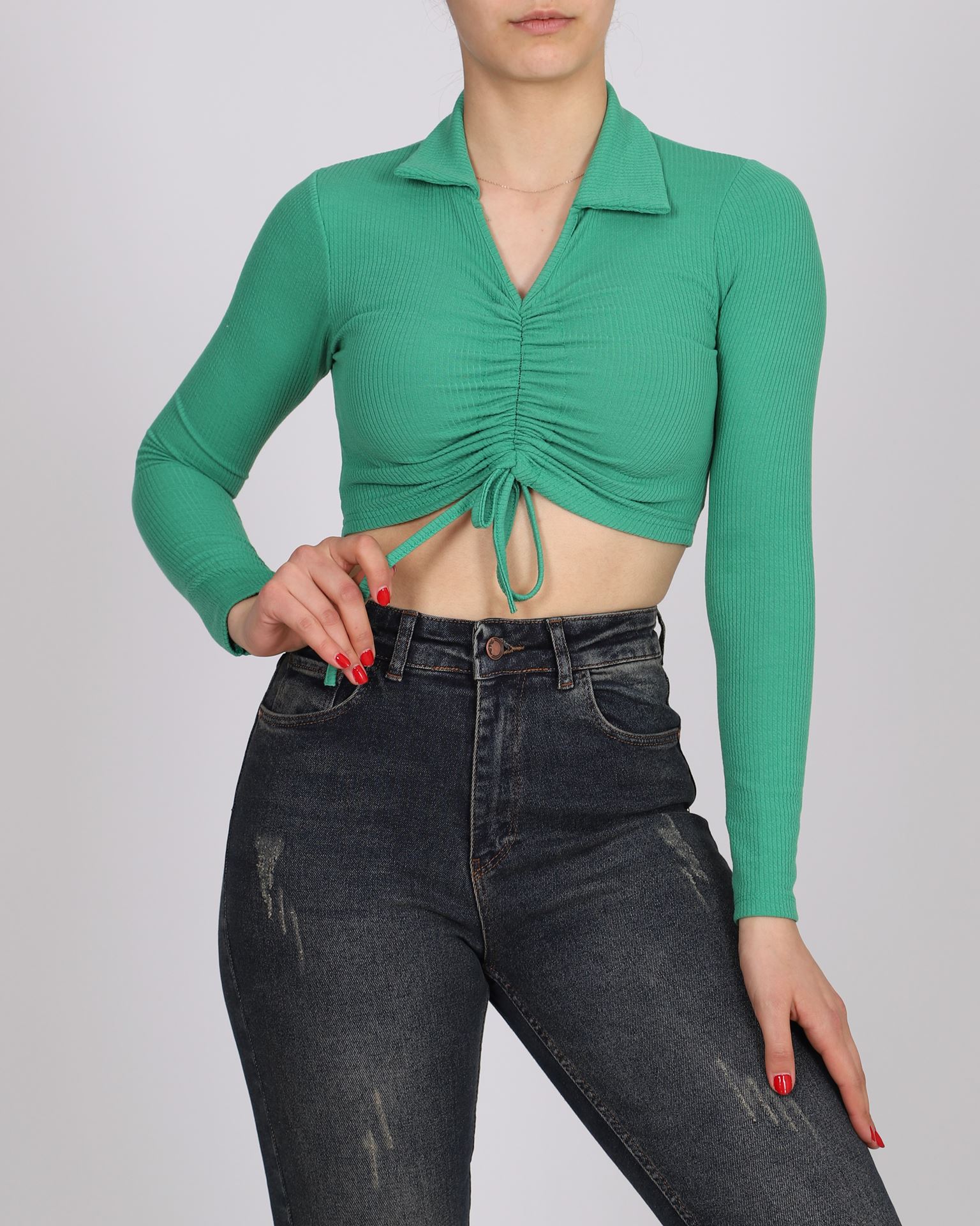 Yeşil Önü Büzgülü Bluz BLZ300