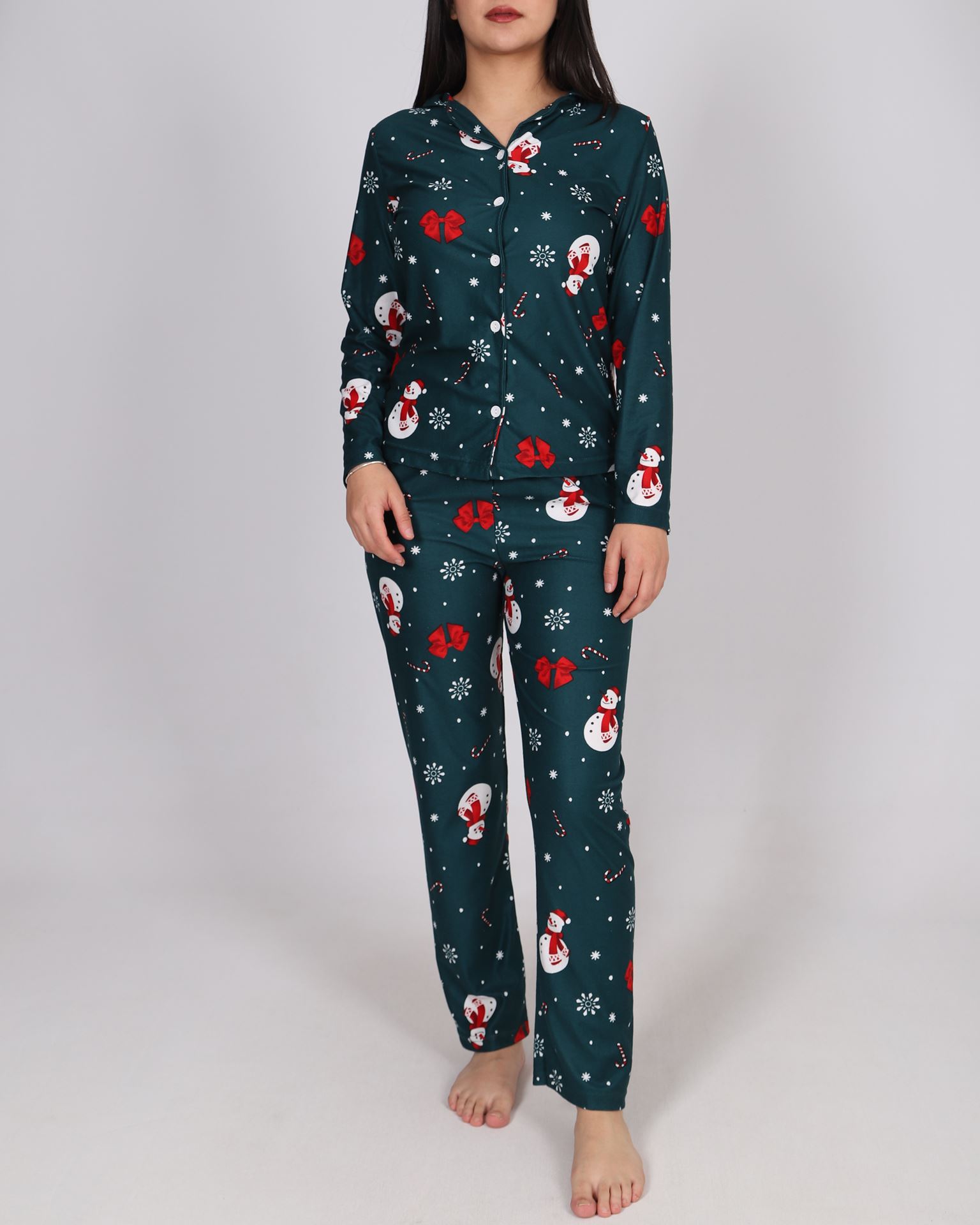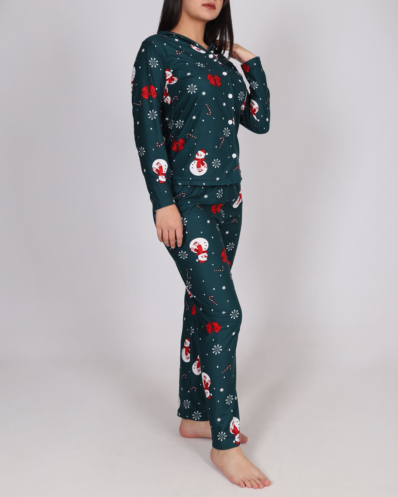 Yeşil Süet Düğmeli Pijama Takımı PJM2116