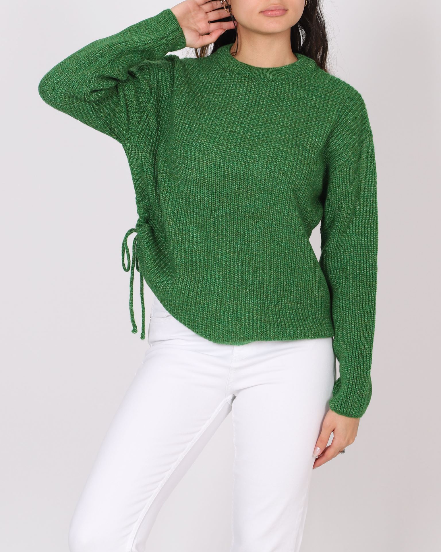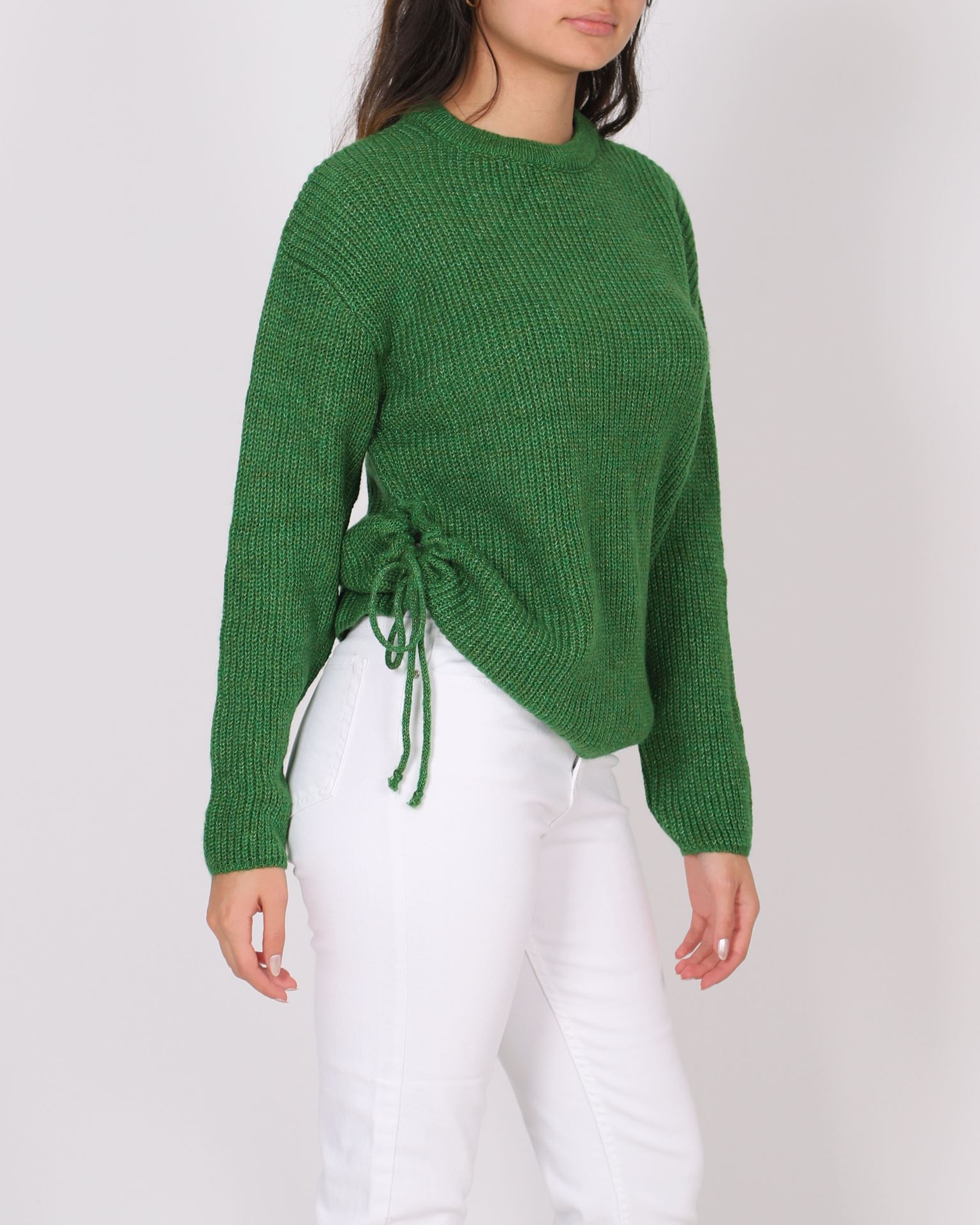 Yeşil Yan Yırtmaçlı Triko Kazak KZK576
