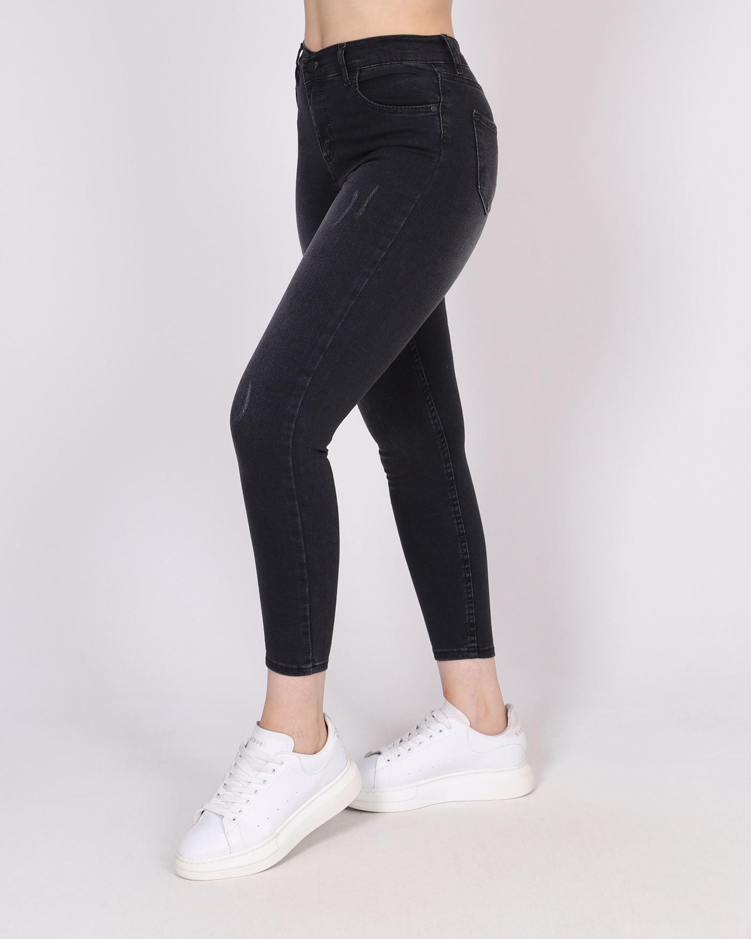Yüksek Bel Koyu Füme Skinny Jean PNT686
