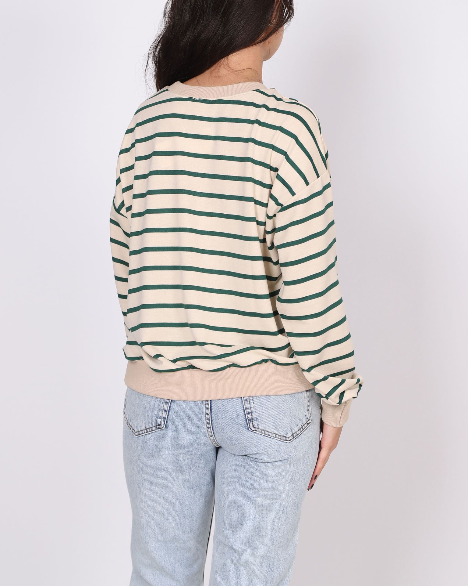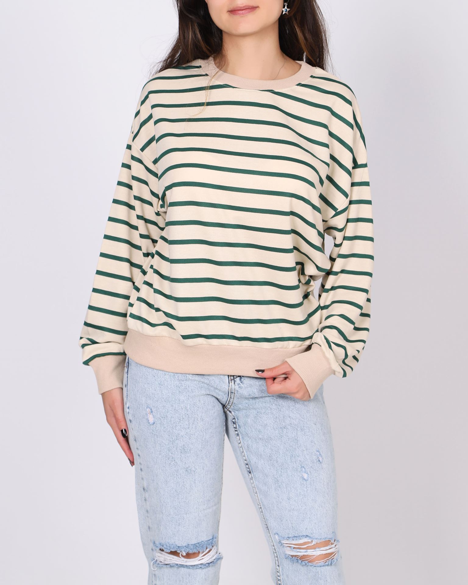 Zümrüt Yeşili Çizgili Bisiklet Yaka Sweat SWT994